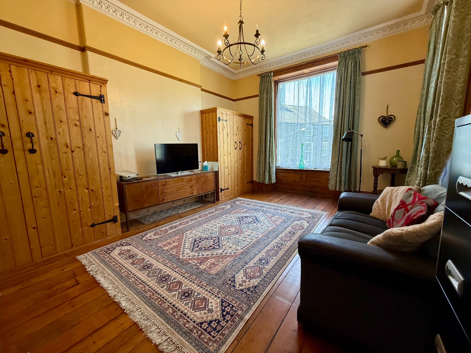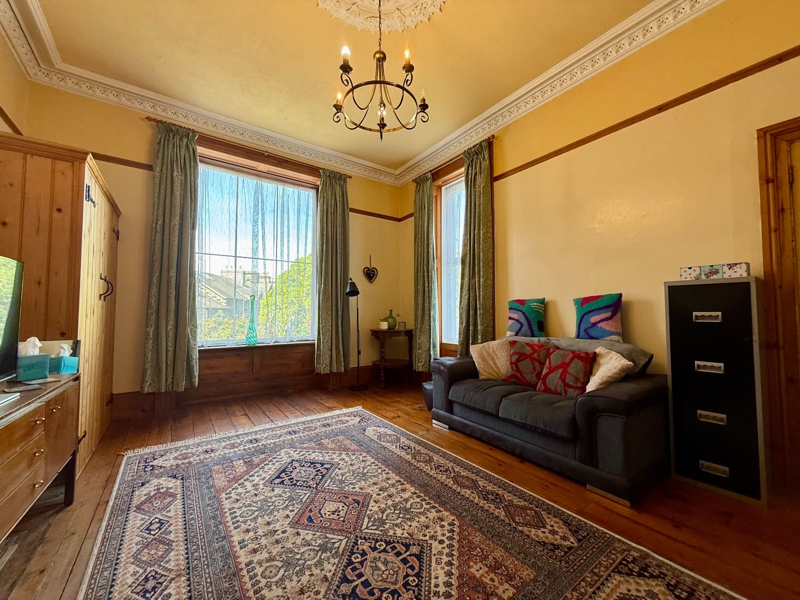 Window to front, coved ceiling, picture rail, radiator, carpet.