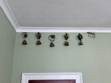 Window to side, coved ceiling, original servants bells (not connected), built-in cupboard, wall mounted gas fire with back boiler controlling heating, radiator, cushion flooring.
