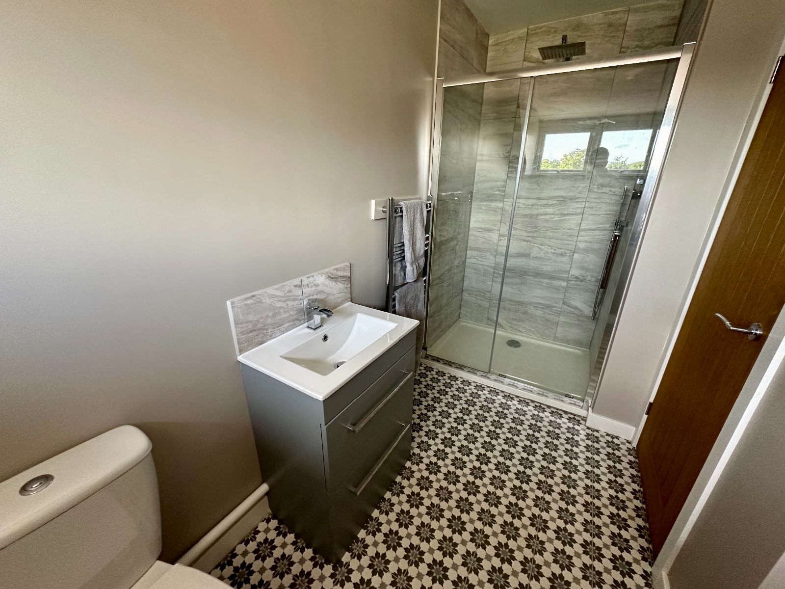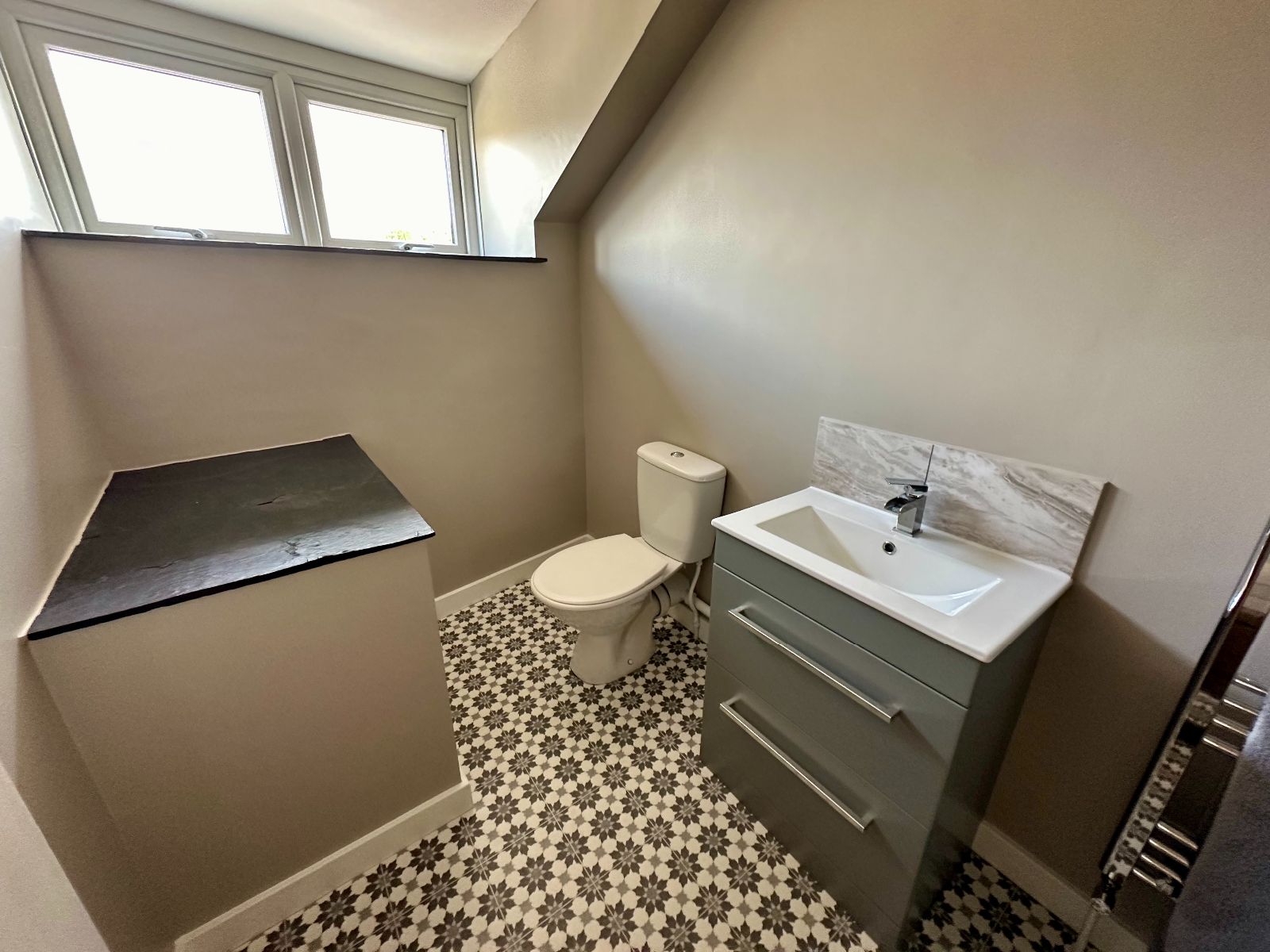 Window to front, low level W.C., vanity wash hand basin, tiled shower cubicle with mains shower, extractor fan, cushioned flooring.