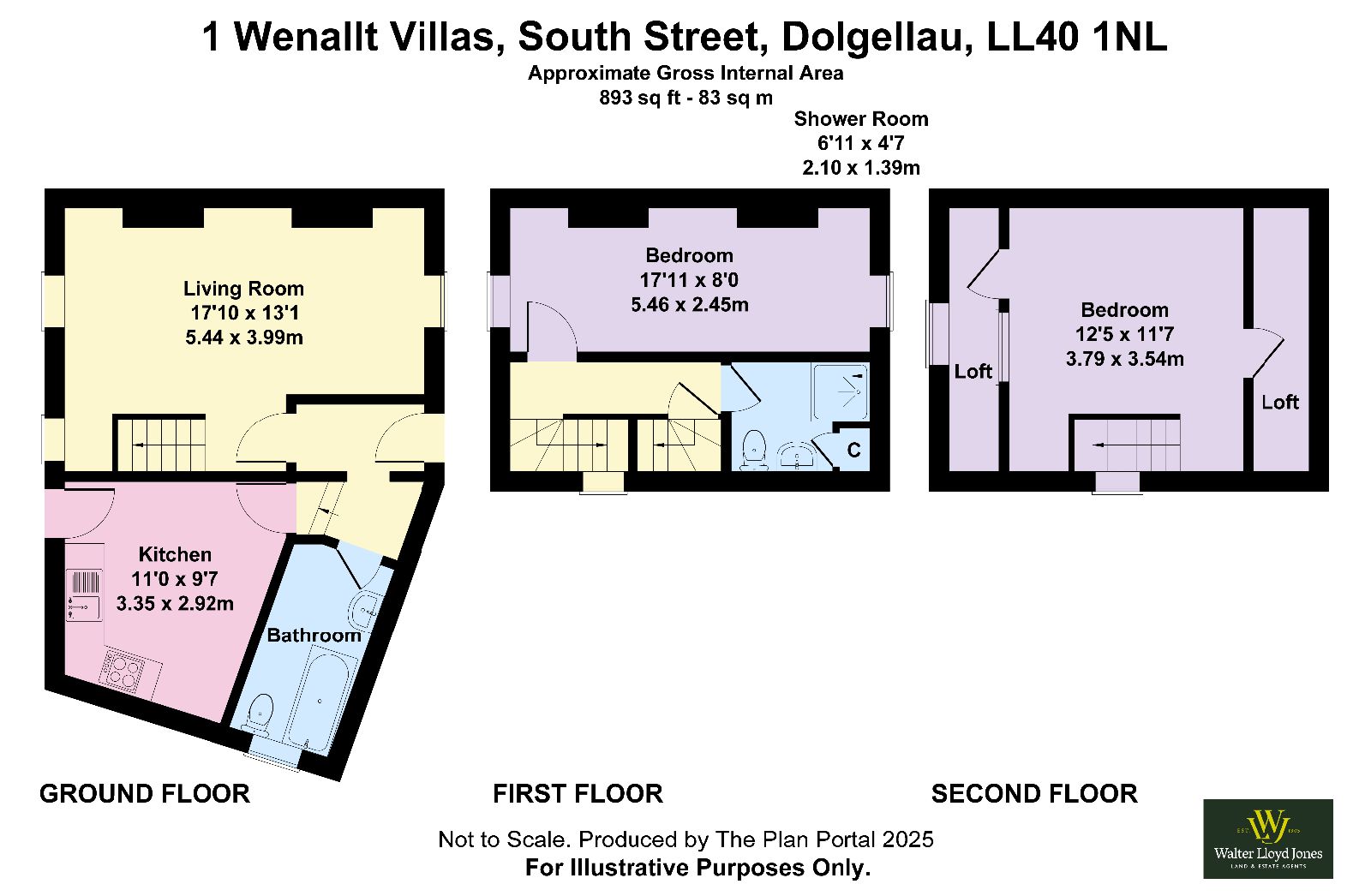 Accommodation comprises:- Entrance hallway, inner hallway, kitchen, bathroom, sitting room, first floor Bedroom 1 and shower room, second floor attic bedroom 2.