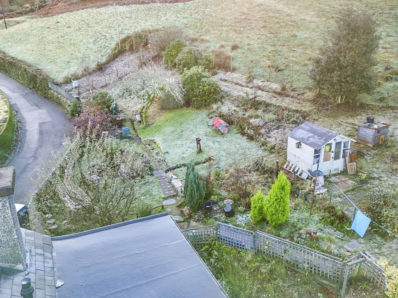 Side/rear: A large garden to the side and rear of the property, laid mainly to lawn with ornamental pond, useful rear storage area and selection of sheds. To the far end of the plot there is a former vegetable garden. The upper part of the garden is terraced and enjoys views of open countryside.
