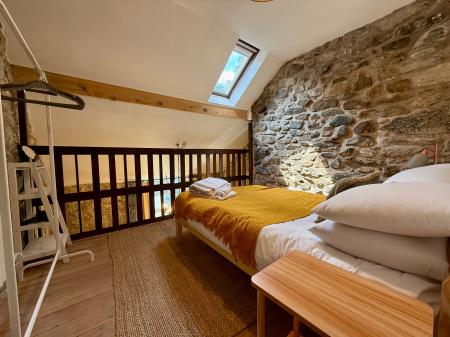 Mezzanine style bedroom, Velux to front, access to roof, electric radiators, exposed floorboards