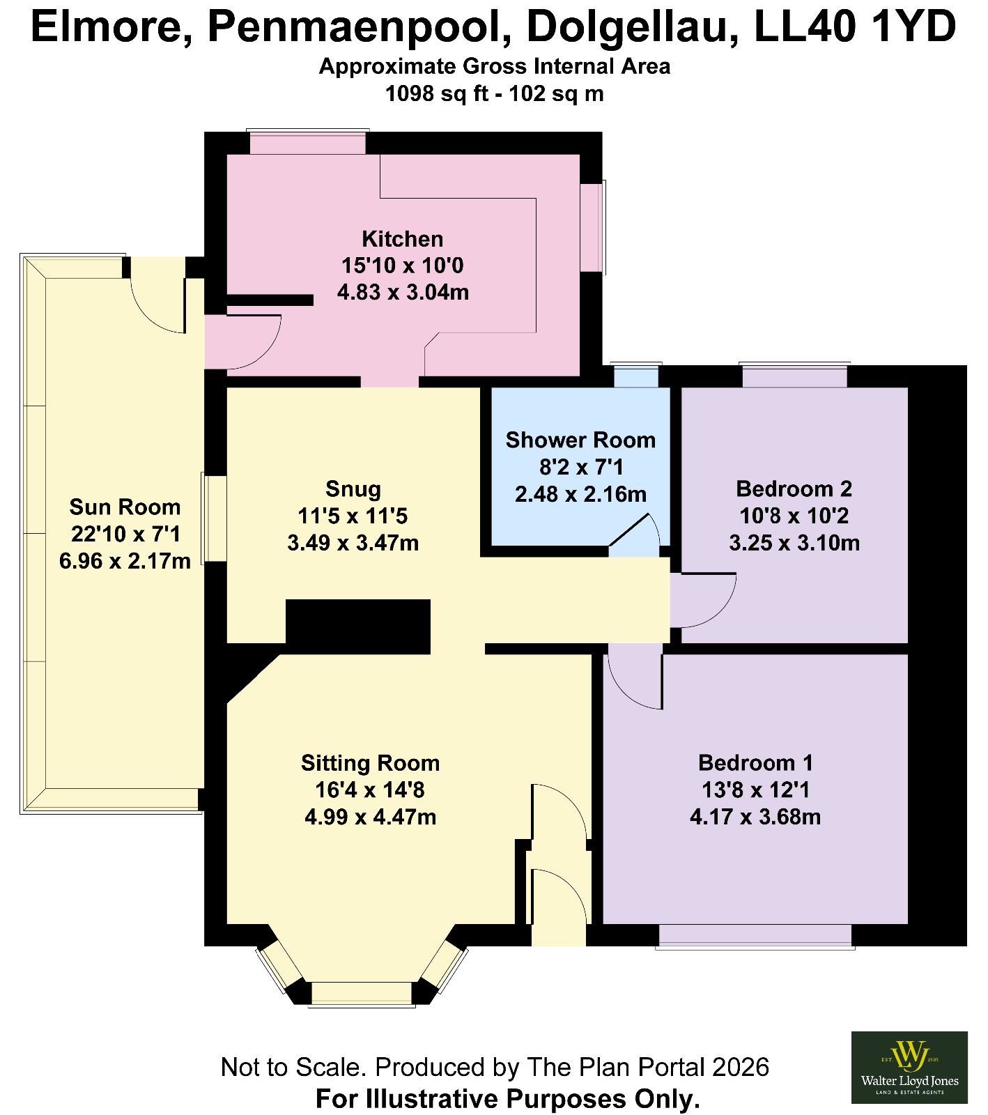 The bungalow is equipped with oil-fired central heating and UPVC double glazing. The accommodation is accessed via a front door into a vestibule, leading through to a sitting room with impressive views, a rear snug, kitchen/breakfast room, and conservatory. An inner hallway provides access to two bedrooms and a shower room.