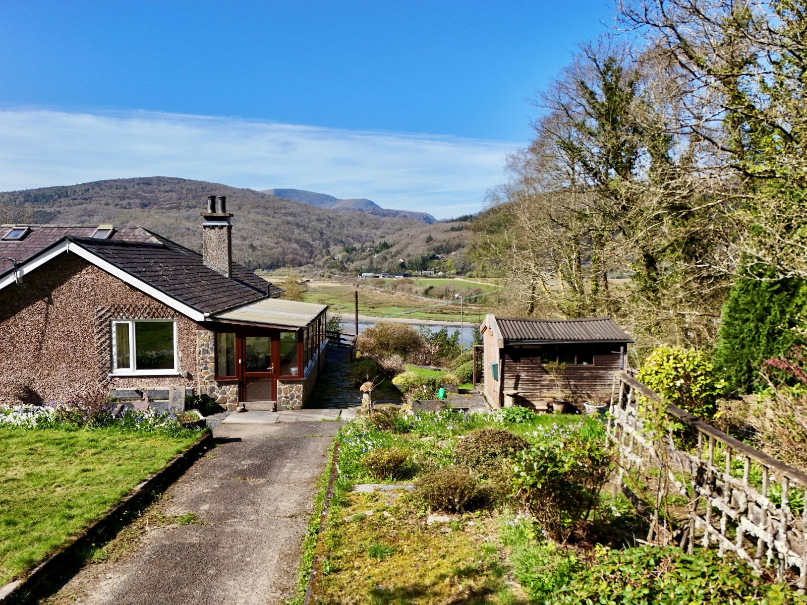 Elmore is a semi-detached, two-bedroom bungalow of traditional construction beneath a slate roof, occupying an elevated position with stunning views across the Mawddach Estuary and the iconic Penmaenpool Toll Bridge.