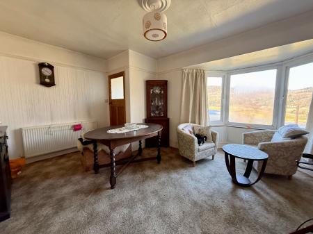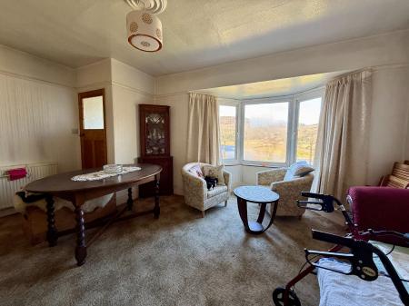 Bay window to front with stunning views over the estuary and mountain range beyond, picture rail, tiled open fire place on a tiled hearth, radiator, carpet.