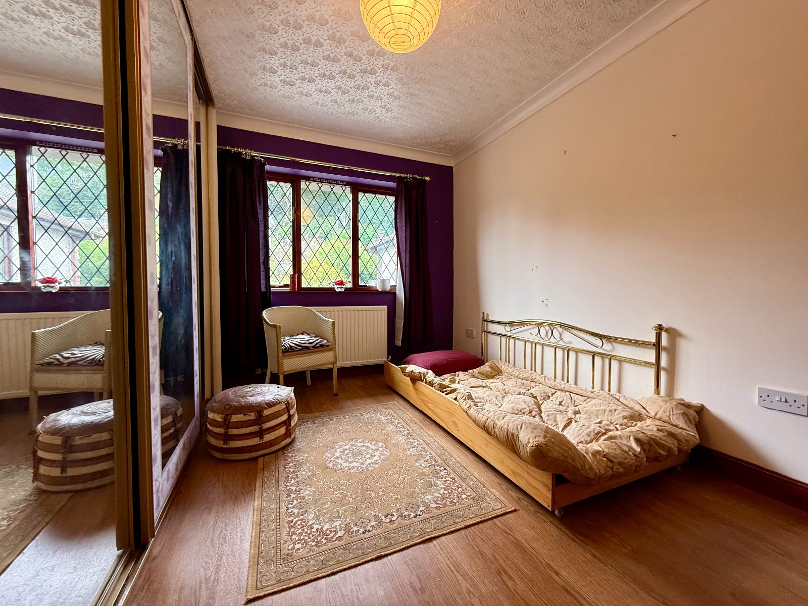 Window to front, 3 fitted wardrobes with mirrored front, radiator, airing cupboard housing hot water tank, laminate flooring.