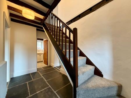 Door to front, exposed beams and lintels, radiator, slate flagged flooring.