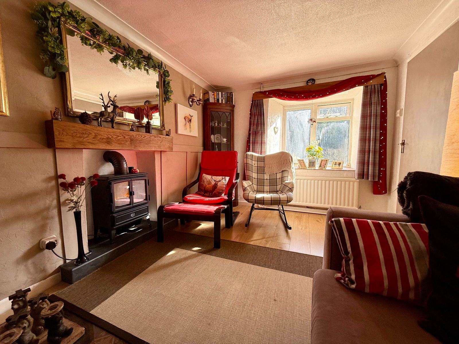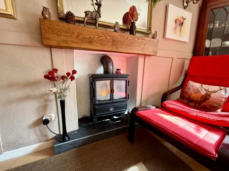 Window to front and rear with forestry views, fireplace with oak mantel, radiator, laminate floor.