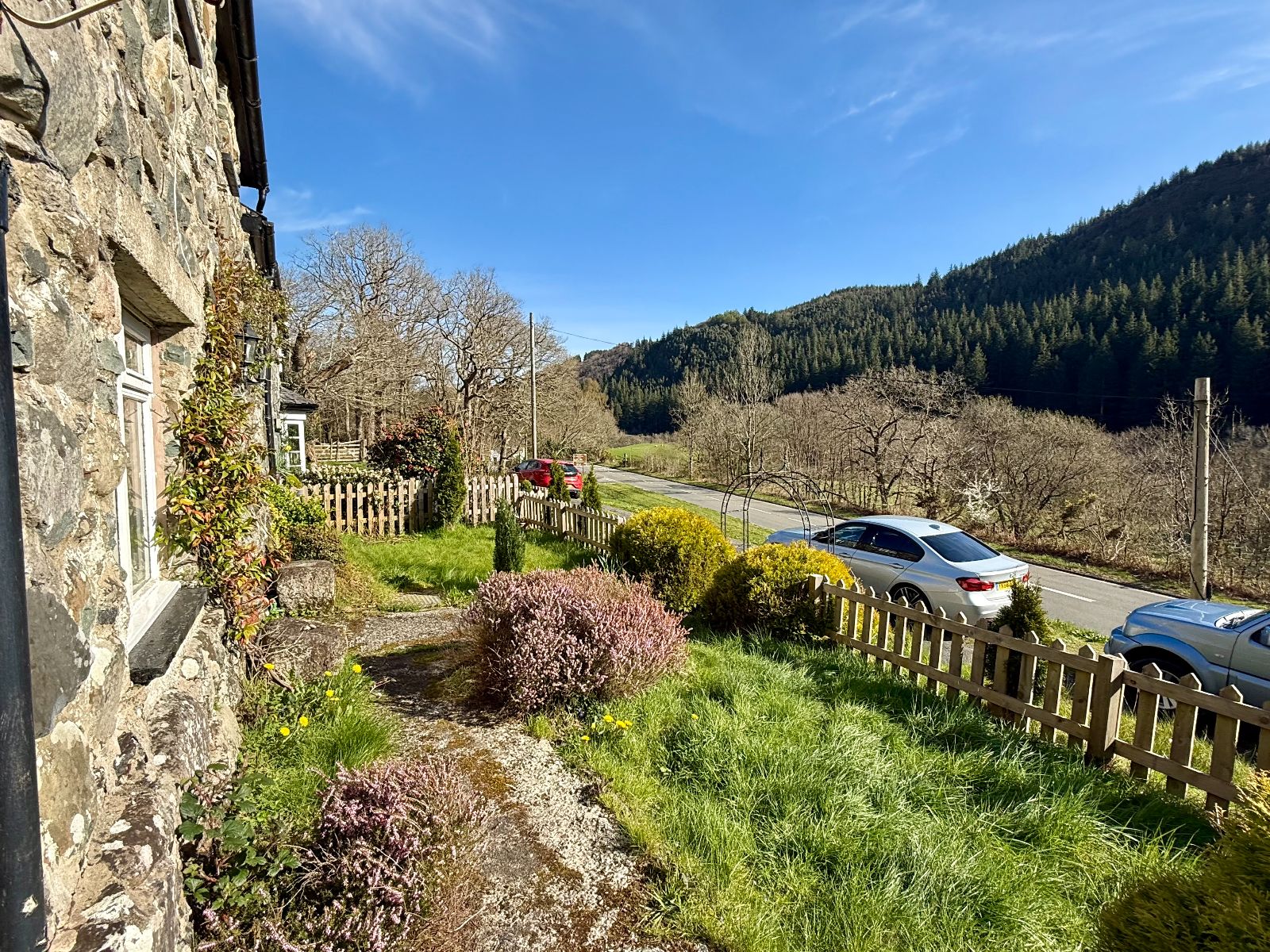 Situated close to Coed Y Brenin Forest Park and approximately five miles from the town of Dolgellau, the property enjoys an elevated position above the main road. It boasts a surprisingly generous front and side garden, backing onto open farmland, with pleasant views across the forestry to the front.
