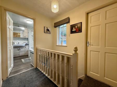 On the first floor, the landing provides access to three double bedrooms, a modern bathroom, and a separate WC.