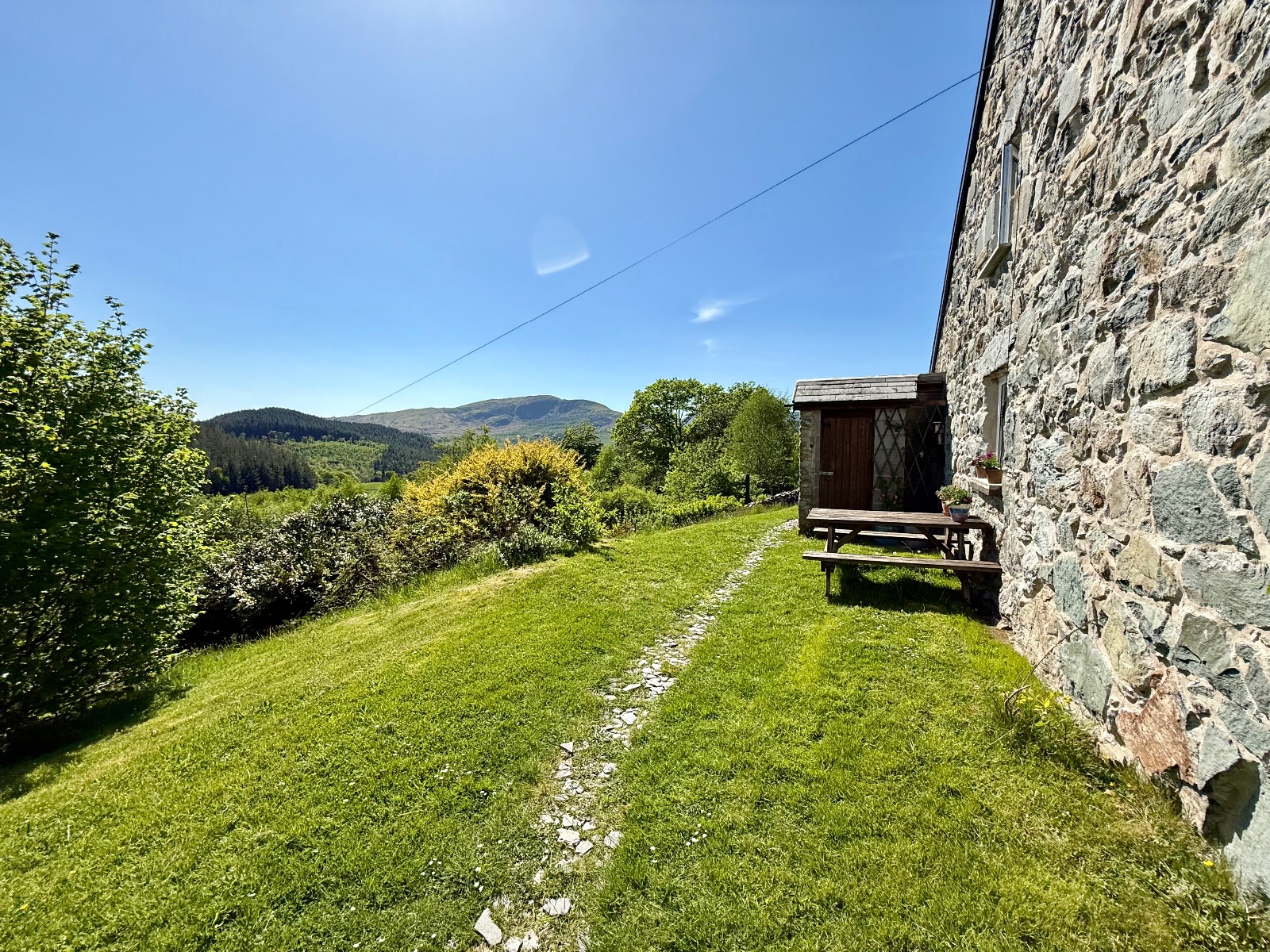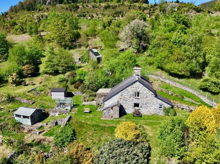 Set within approximately 6 acres, the property includes a garden, paddock, and agricultural land. It is a registered smallholding, located within the Coed y Brenin Forest in the heart of Eryri National Park. This peaceful and secluded setting offers breath-taking views of Y Garn and Rhobell Fawr.