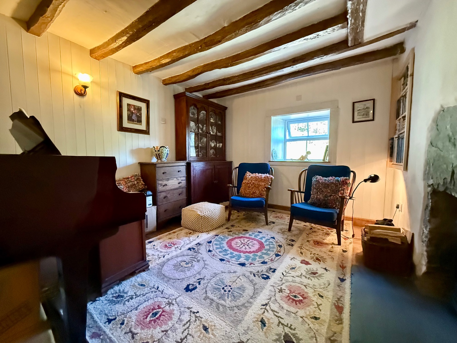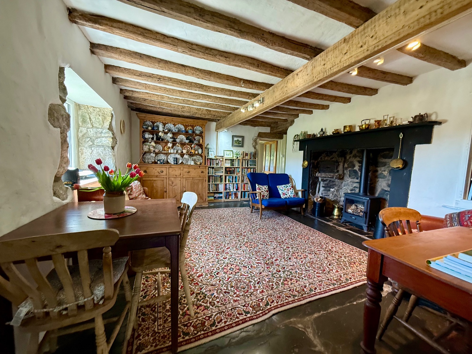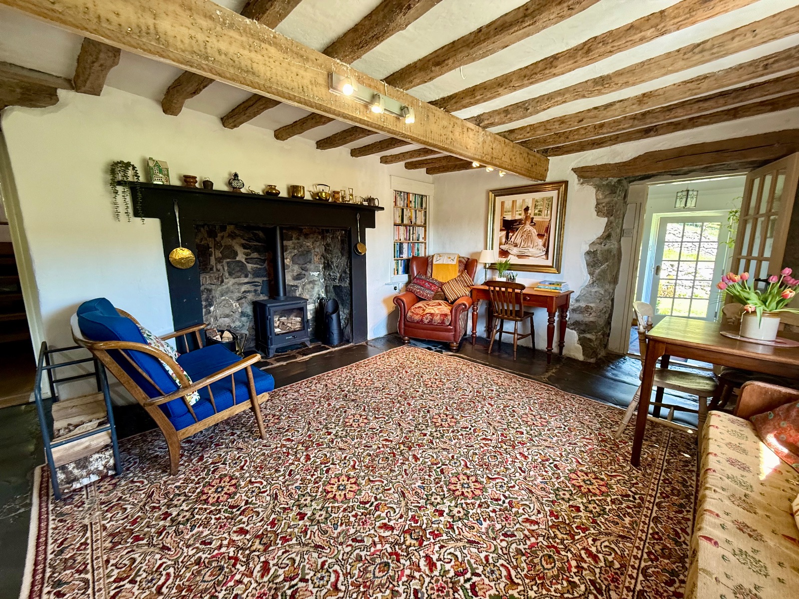 The cottage has retained many original character features, including exposed timber beams, a slate-flagged floor, and impressive period fireplaces. Under the current ownership, the property has undergone significant maintenance and improvement, including the installation of two multi-fuel stoves, replacement of several windows and doors, repointing and sandblasting of the stonework, and chimney refurbishment, creating a comfortable home for a new buyer.