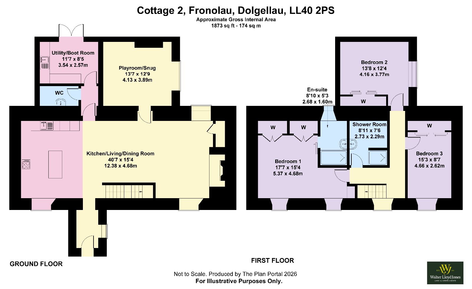 The Cottage, benefits from a spacious open plan living room/kitchen area with the addition of a play room/snug, a downstairs W.C. and utility room. To the first floor there are three double bedrooms, one with en-suite and family bathroom