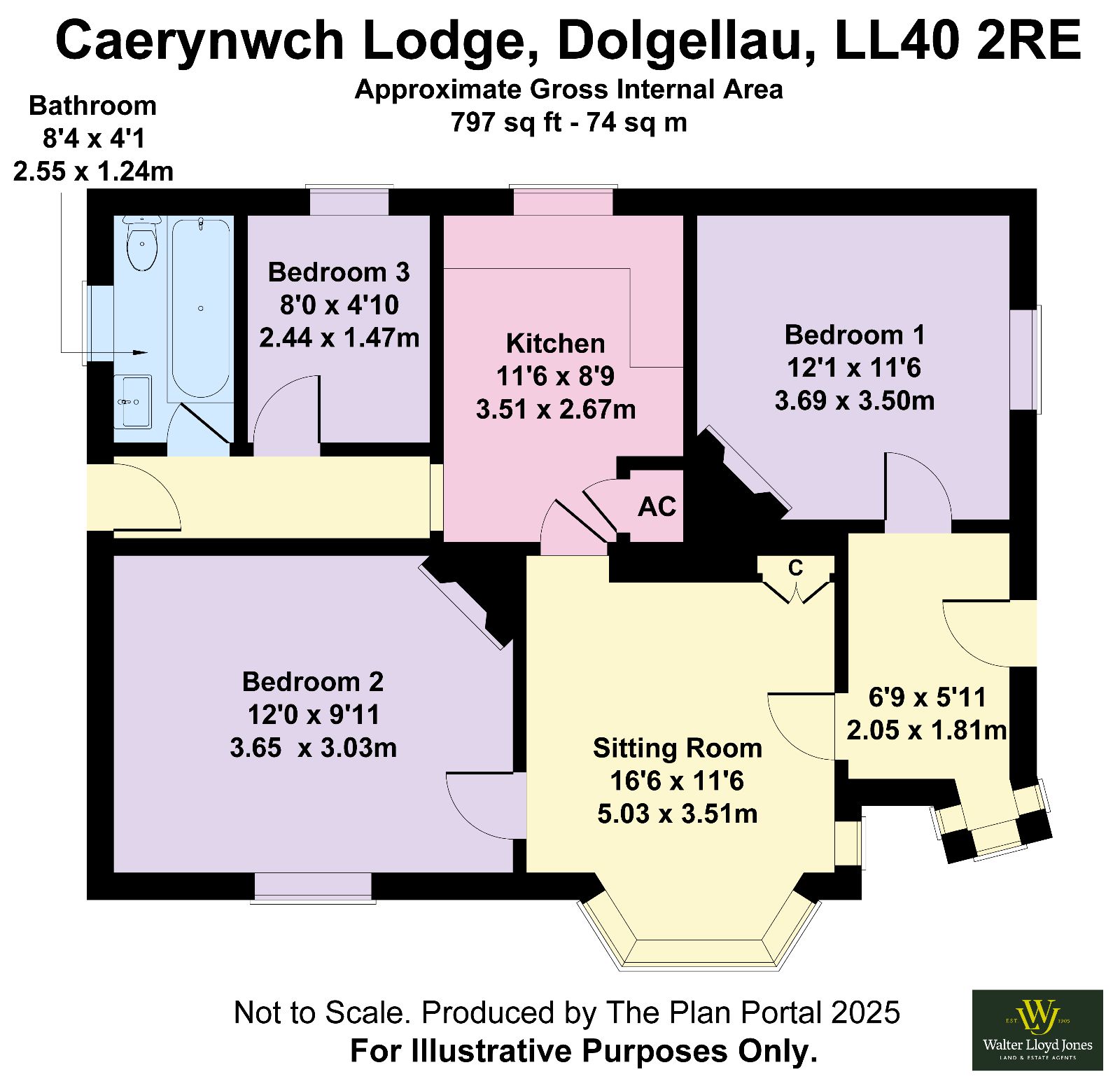 The accommodation briefly comprises: entrance hallway, sitting room, kitchen, bathroom, and three bedrooms.