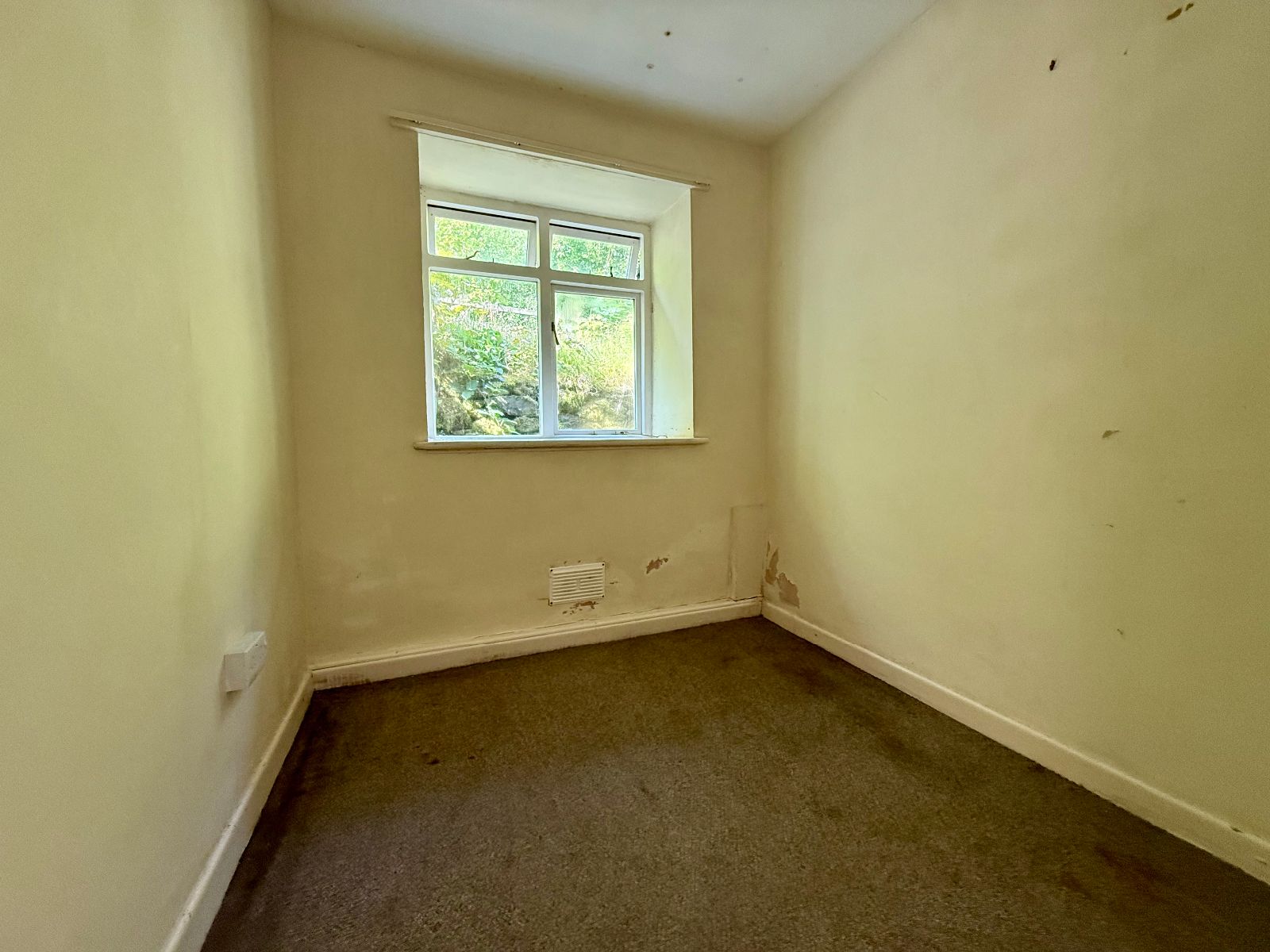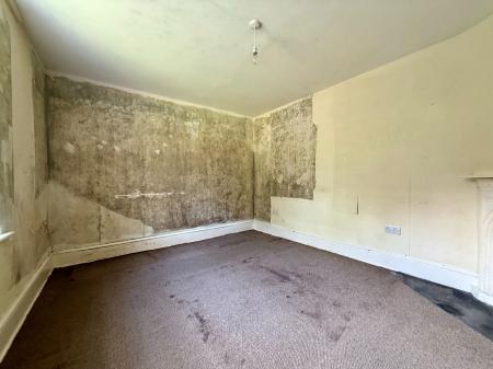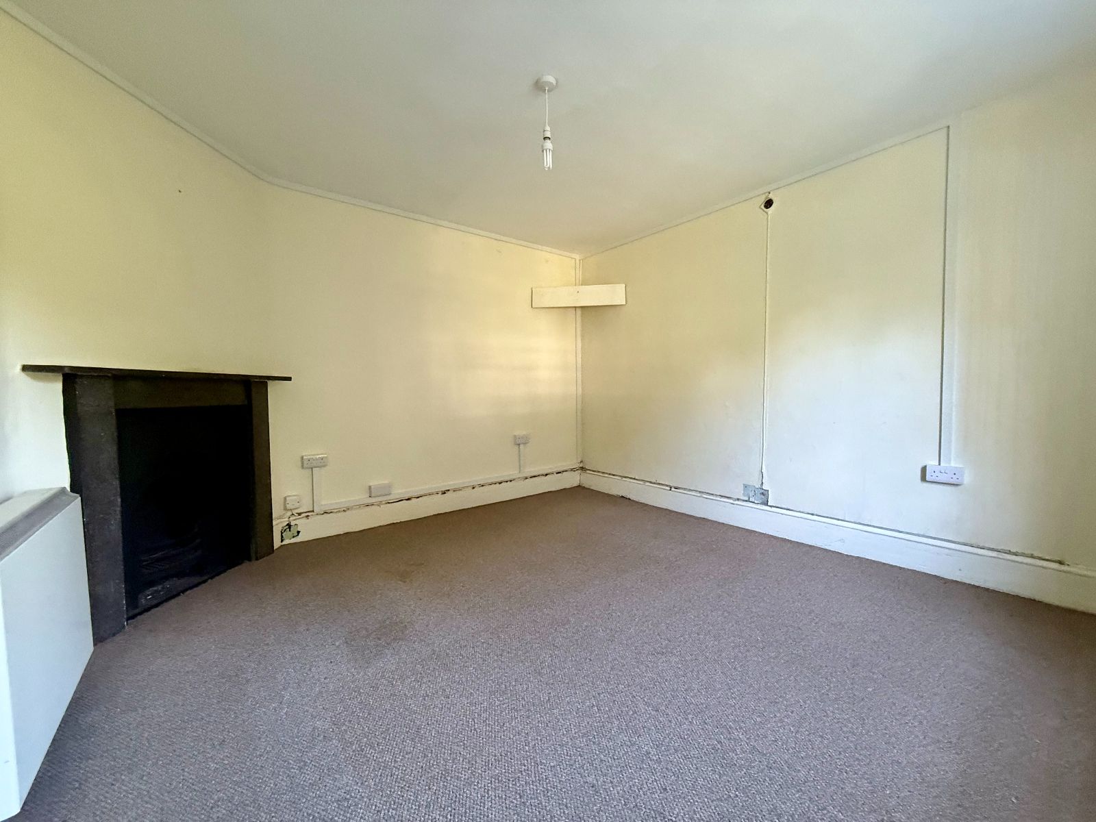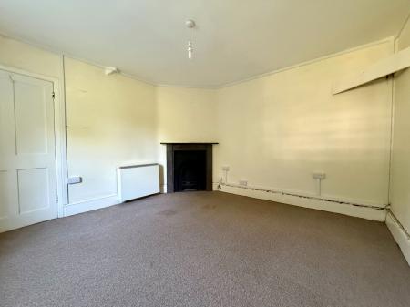 Window to side, access to loft, feature cast iron fireplace, slate hearth, electric storage heater, carpet.