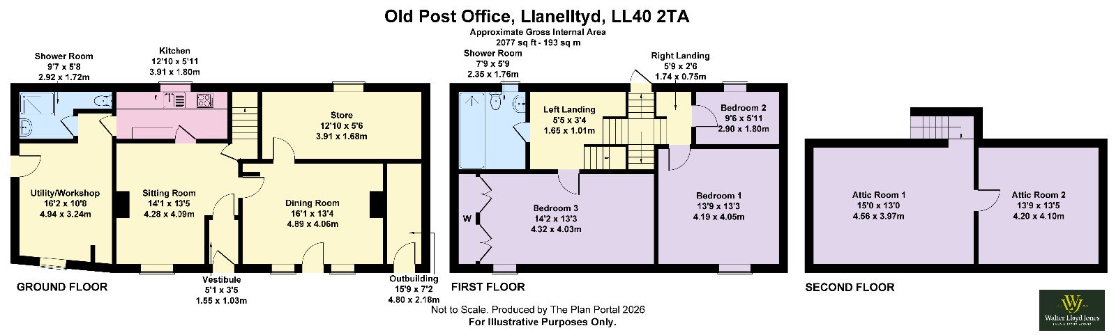 The accommodation briefly comprises:- Entrance vestibule, sitting room, dining room, useful store room, kitchen, workshop/utility room, shower room, first floor landing, three bedrooms, shower room, two useful attic rooms.