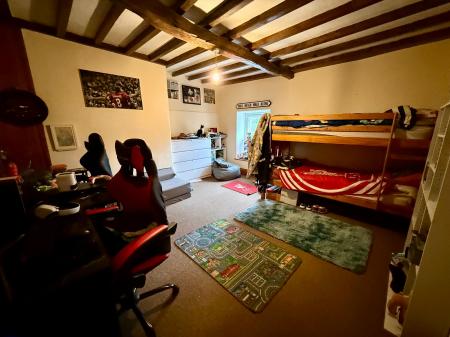 Window to rear, exposed beams, radiator, exposed floorboards.