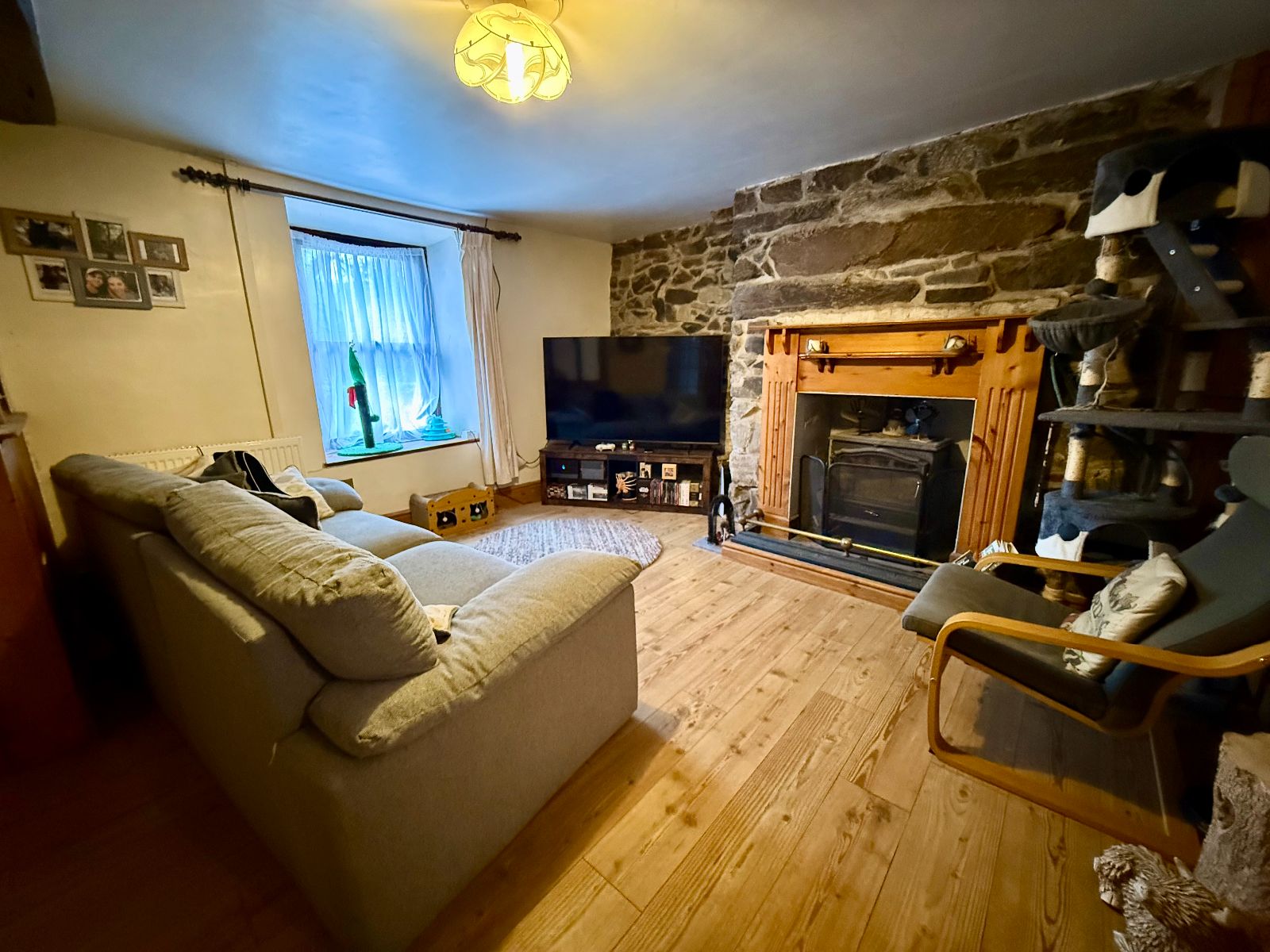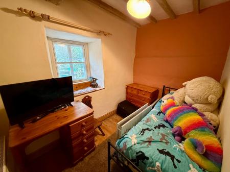 Velux to side, skylight to side, exposed beams and 'A' frame, exposed stone chimney breast, under eaves storage, exposed floorboards.