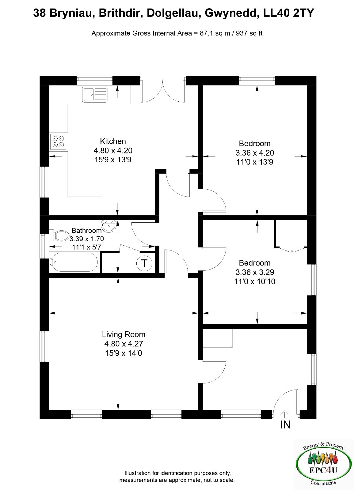 Bedroom 2 w: 3.36m x l: 4.2m (w: 11' x l: 13' 9")