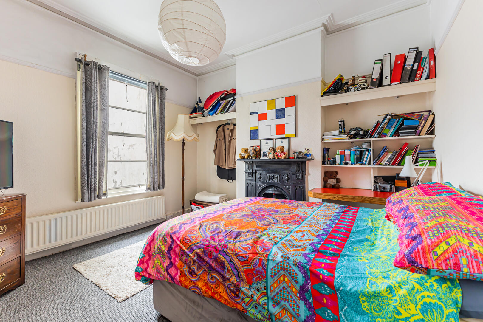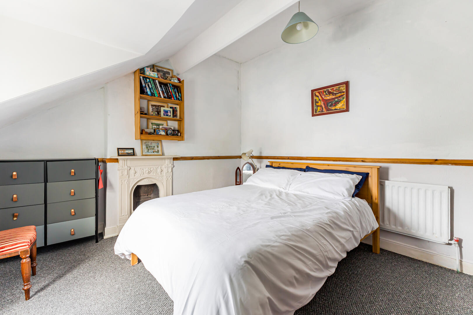 Bedroom Three - 12'5" x 11'6" - Period cast iron fireplace, cornice ceiling, picture rail, built-in shelving and desk