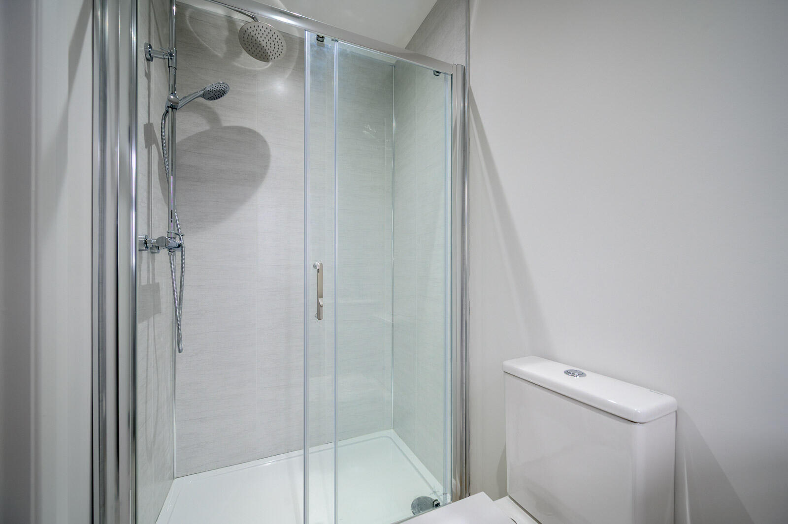 En Suite Shower Room - Three piece suite comprising shower cubicle, wash hand basin with mixer tap, storage beneath, low flush WC, chrome heated towel rail, extractor fan.