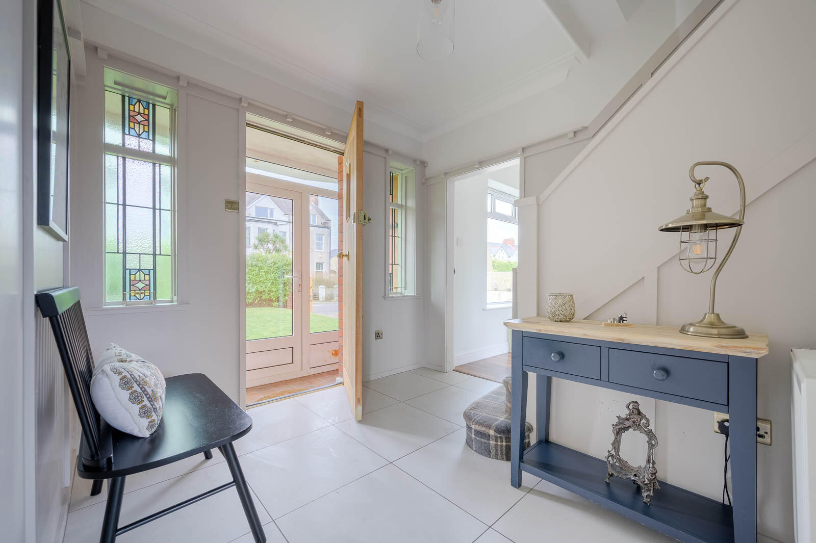 Enclosed Entrance Porch - Fully tiled floor, internal door and leaded glazed stained glass side panels to reception hall.