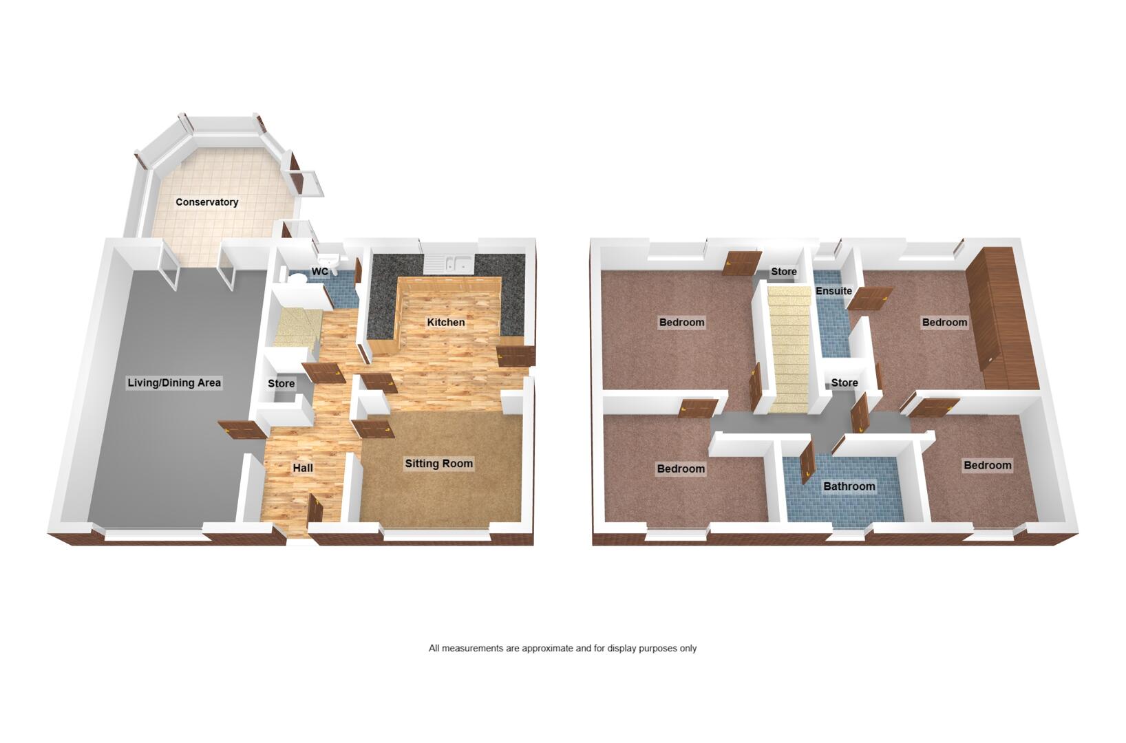 Gardens - Fantastic fully enclosed wrap-around garden with flowerbeds in array of colourful flowers, plants, trees and shrubs, artificial grass, timber decked terrace, vegetable garden, uPVC oil tank, south westerly aspect making it ideal for children at play, outdoor entertaining or enjoying the sun.