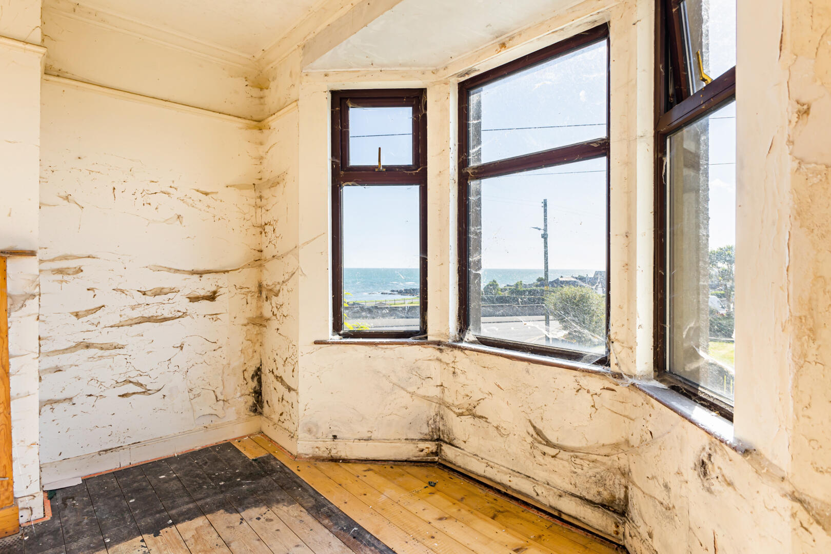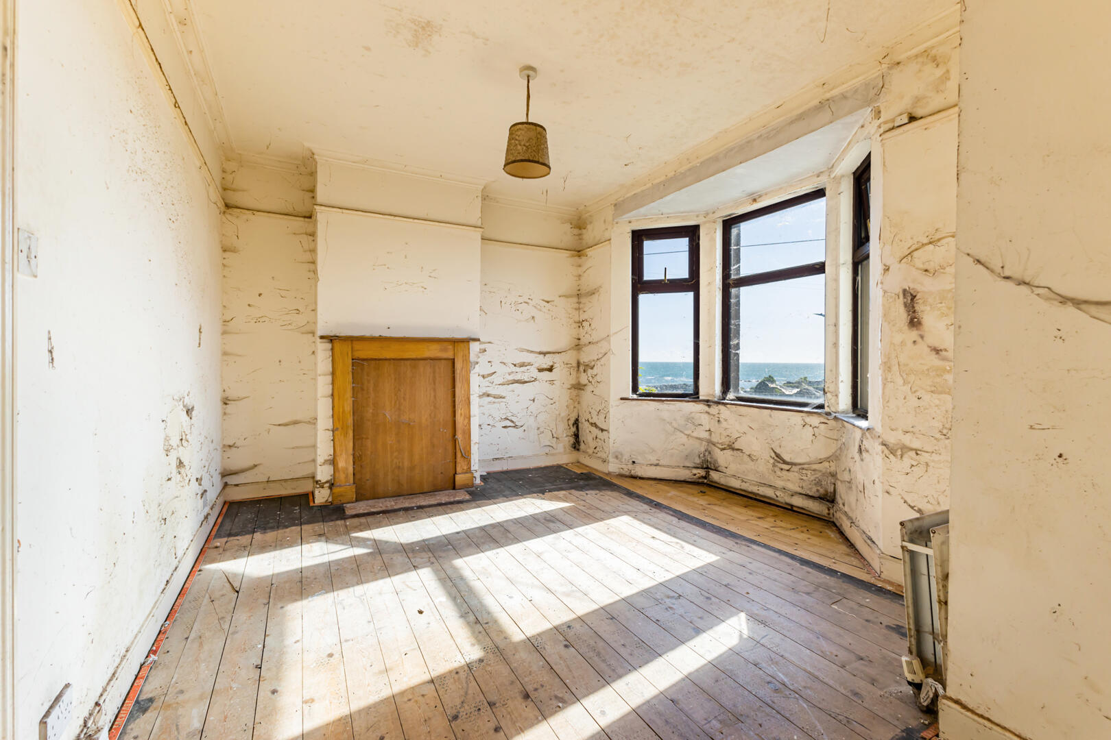 Bedroom One - 14'8" x 11'6" - into bay at widest points Carved wooden fireplace surround, tiled hearth, potential for open fire, picturesque views to Irish Sea, wooden floorboards.
