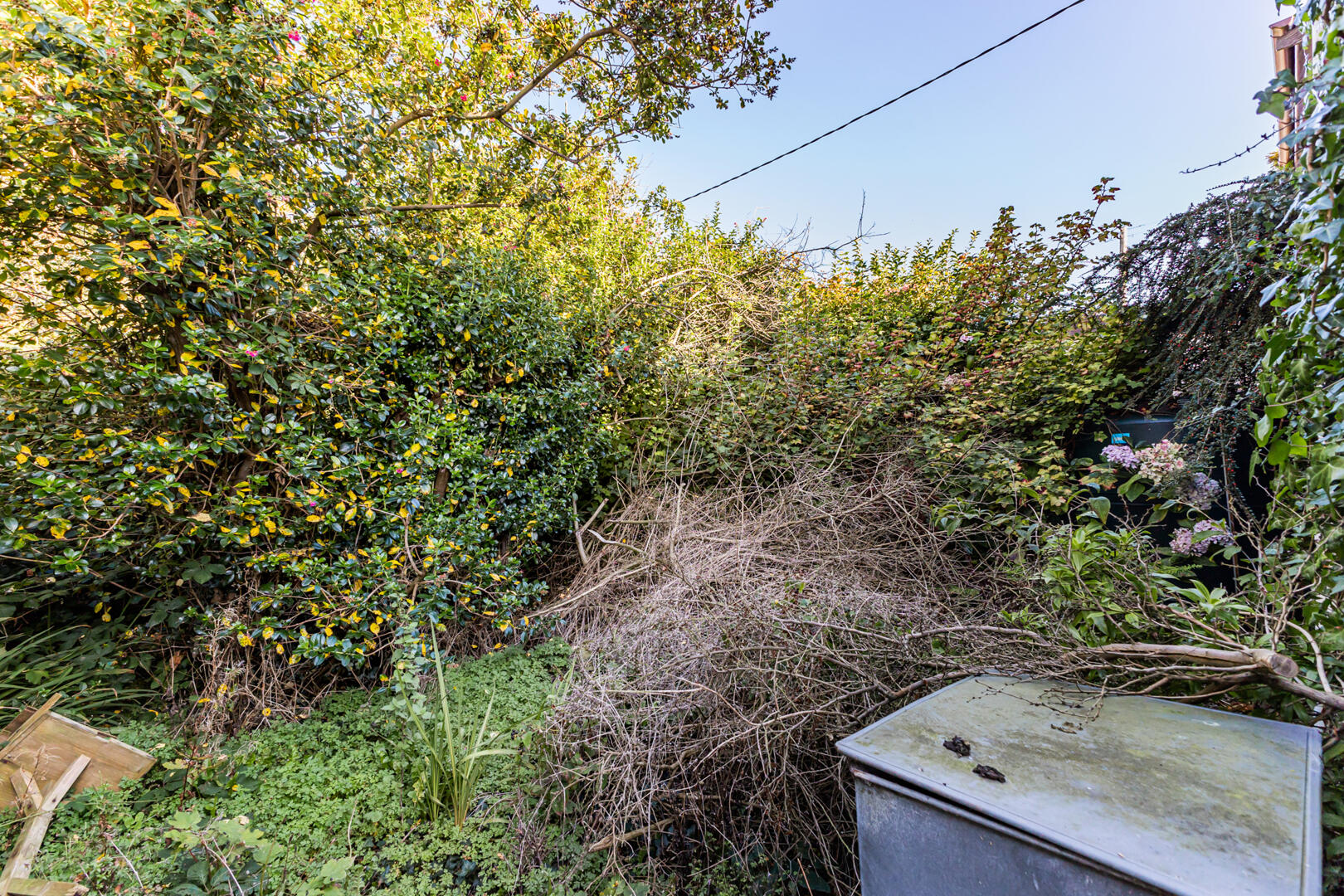 Outside - Front garden, driveway with parking leading to detached garage which will need knocked down, rear garden.
