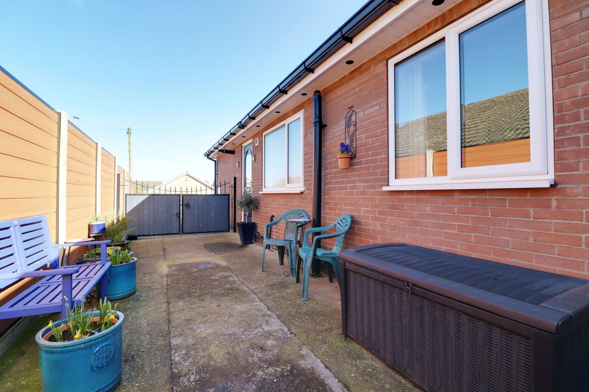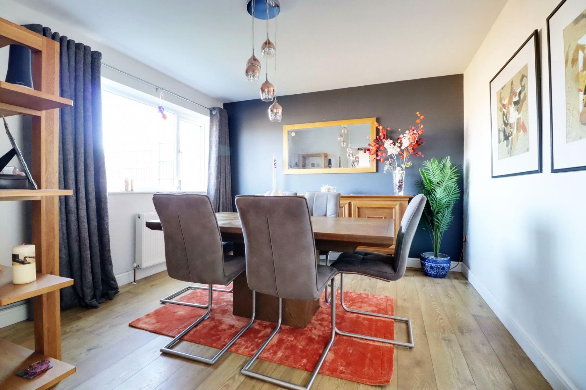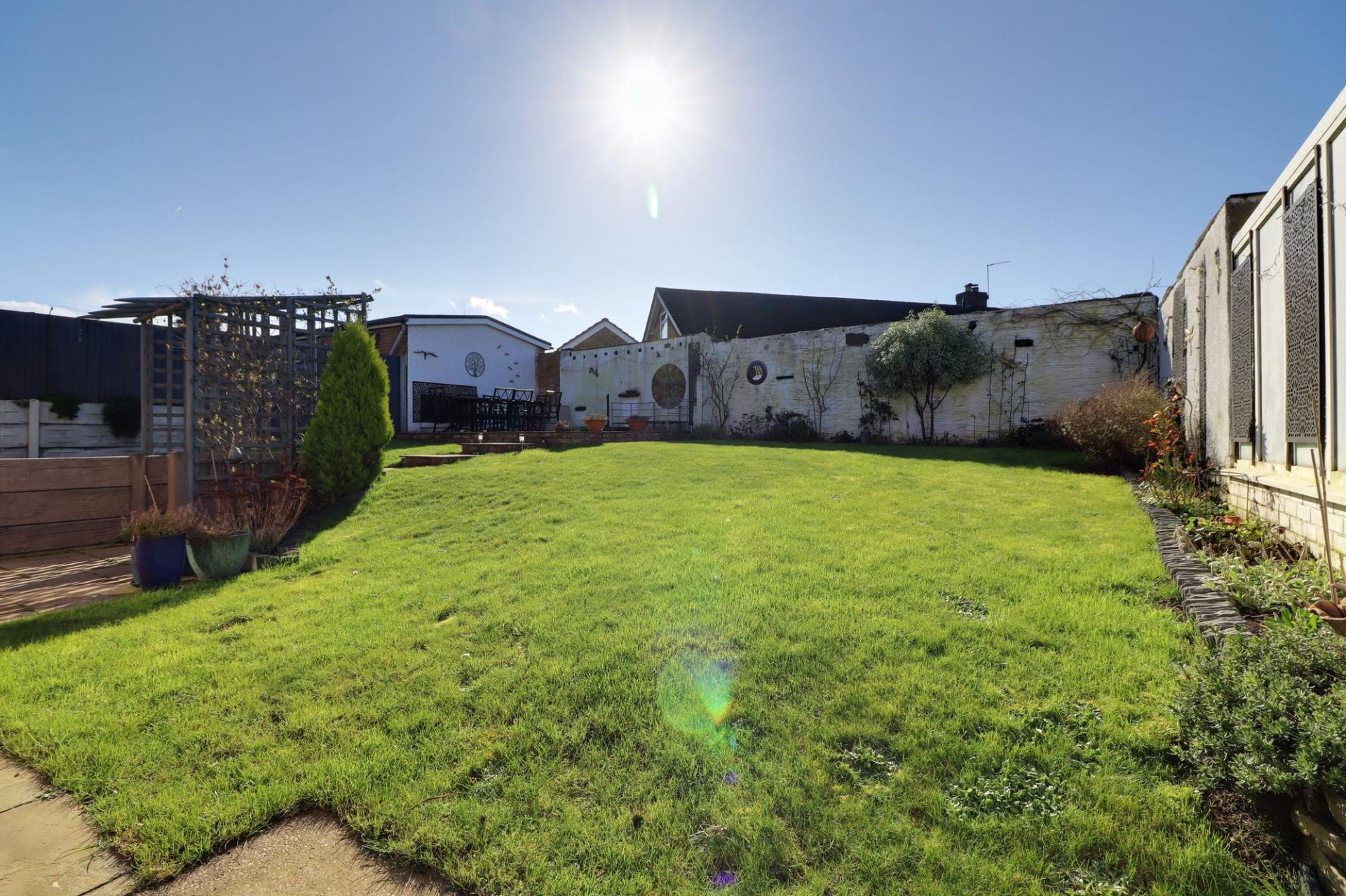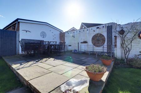 To the front of the property enjoys a manageable shaped lawned garden with adjoining block paved driveway providing parking for a good number of vehicles behind an attractive iron framed gate. The driveay continues down the side providing additional parking with gated access to the garden. The rear garden is fully enclosed enjoying excellent privacy having two shaped lawns and a number of Indian slate flagged seating areas.