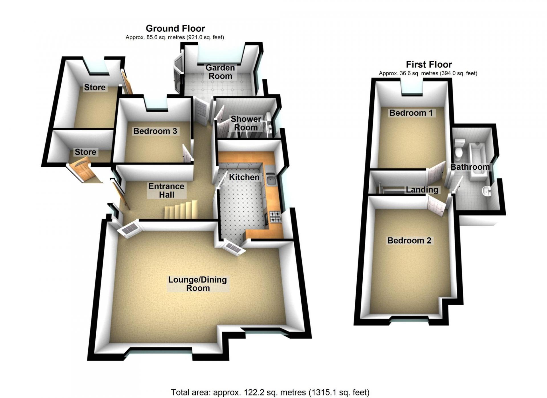 The first floor provides 2 further double bedrooms and a luxury bathroom. The front has a manageable lawned garden with planted borders and an adjoining driveway providing ample parking.
