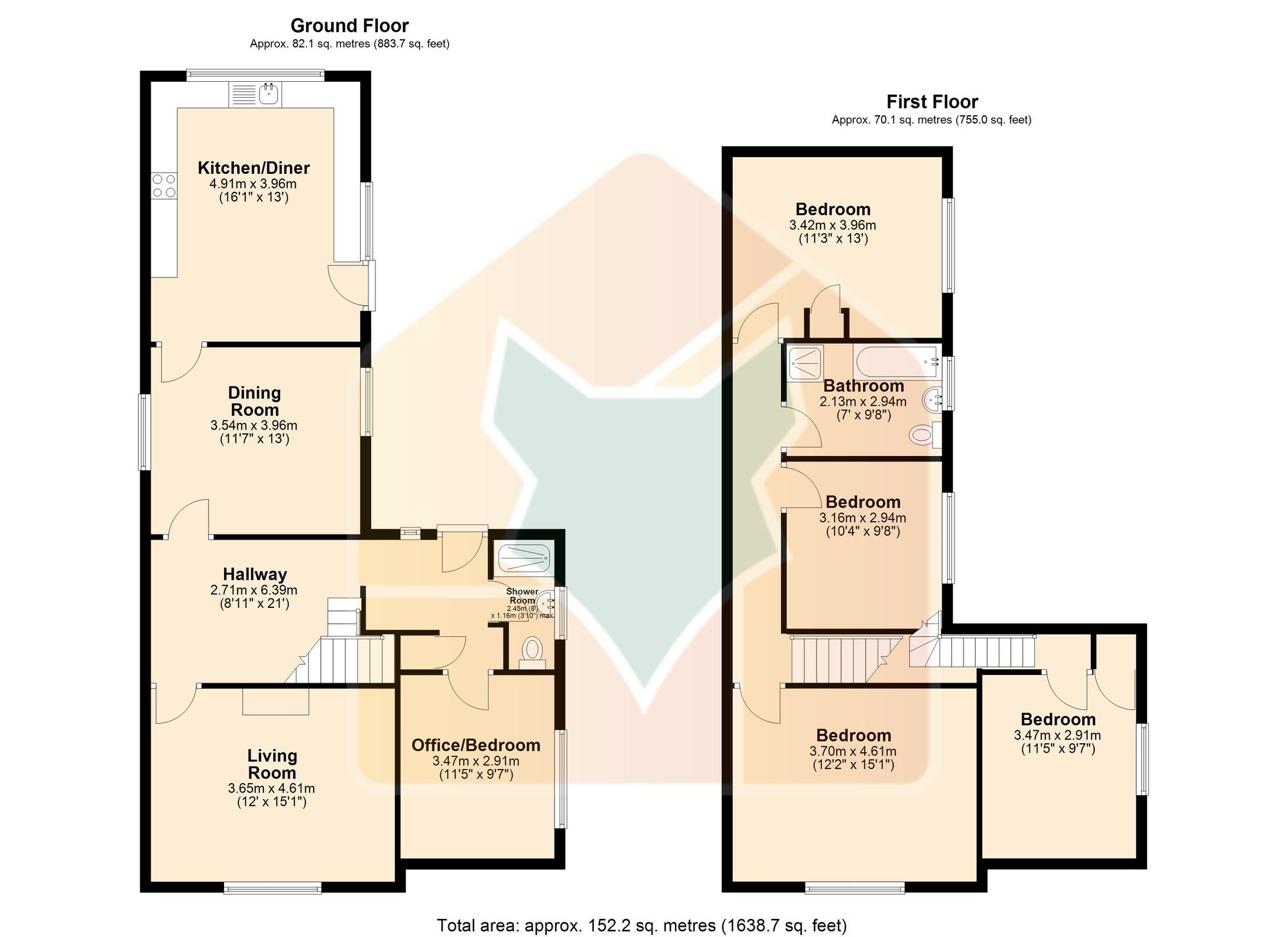 Internally, the accommodation is both generous and versatile. An inviting entrance hall leads to a spacious lounge, ideal for relaxing evenings, and a separate dining room perfect for formal entertaining or family gatherings. A further reception room currently utilised as an office provides flexibility and could easily serve as a fifth bedroom if required. The ground floor also benefits from a modern shower room and a well-appointed dining kitchen, offering ample space for cooking, socialising and day-to-day family life.
