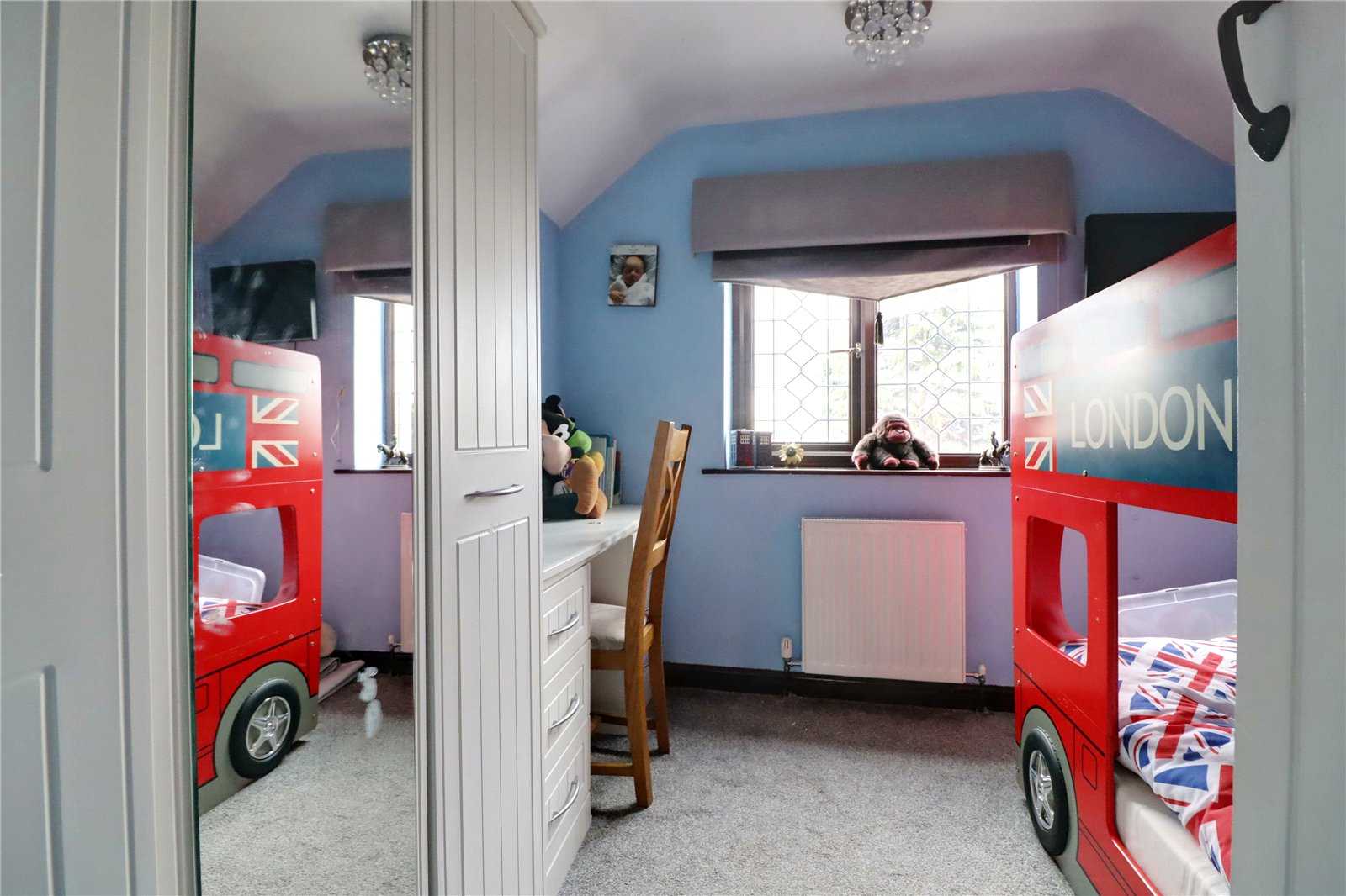 Rear Bedroom 3 8'9" x 8'7" (2.67m x 2.62m). Rear woodgrain effect uPVC double glazed and leaded window.