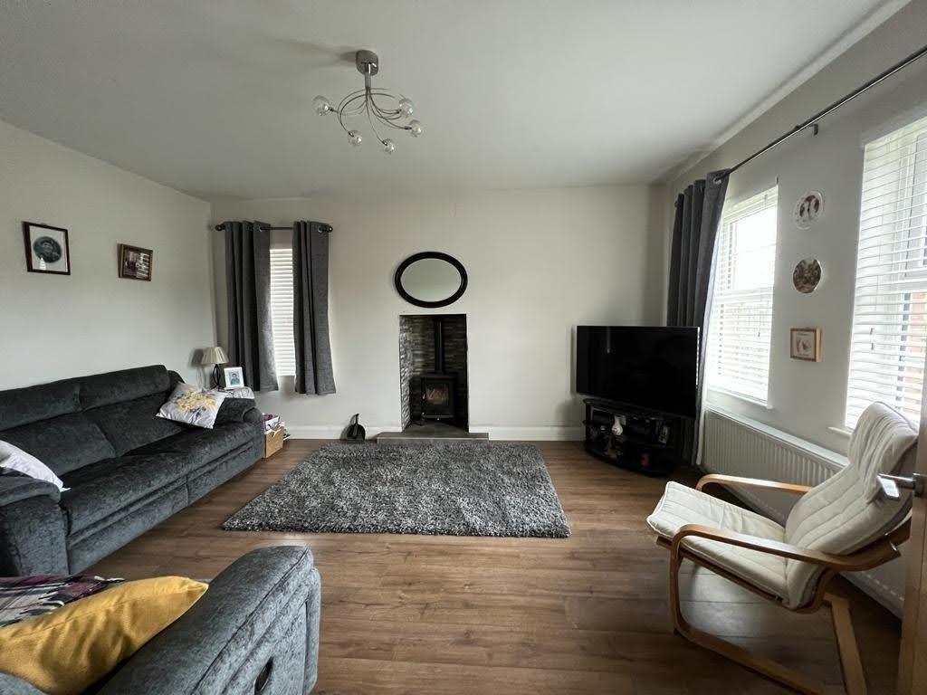 4.98m x 3.84m (16'4" x 12'7") - Having multi fuel stove, laminated wooden floor.