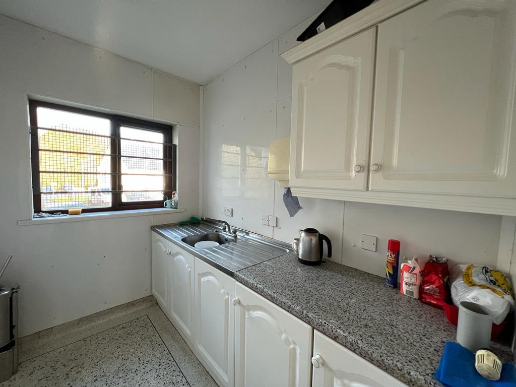 2.54m x 1.80m (8'4" x 5'11") - Having eye and low level units, sink unit, terrazzo floor.