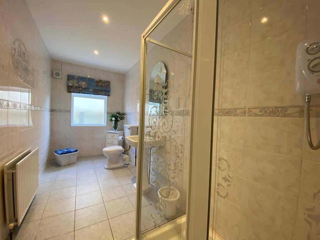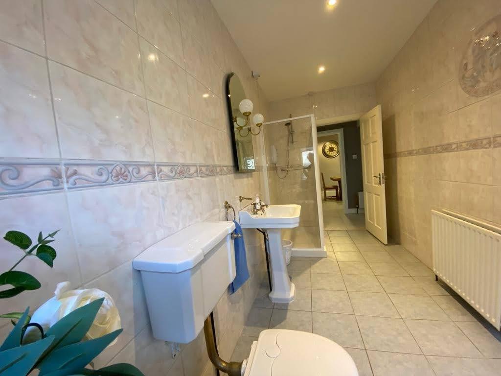 Comprising fully tiled walk in electric shower, whb and wc, recessed lighting, fully tiled walls, tiled floor.