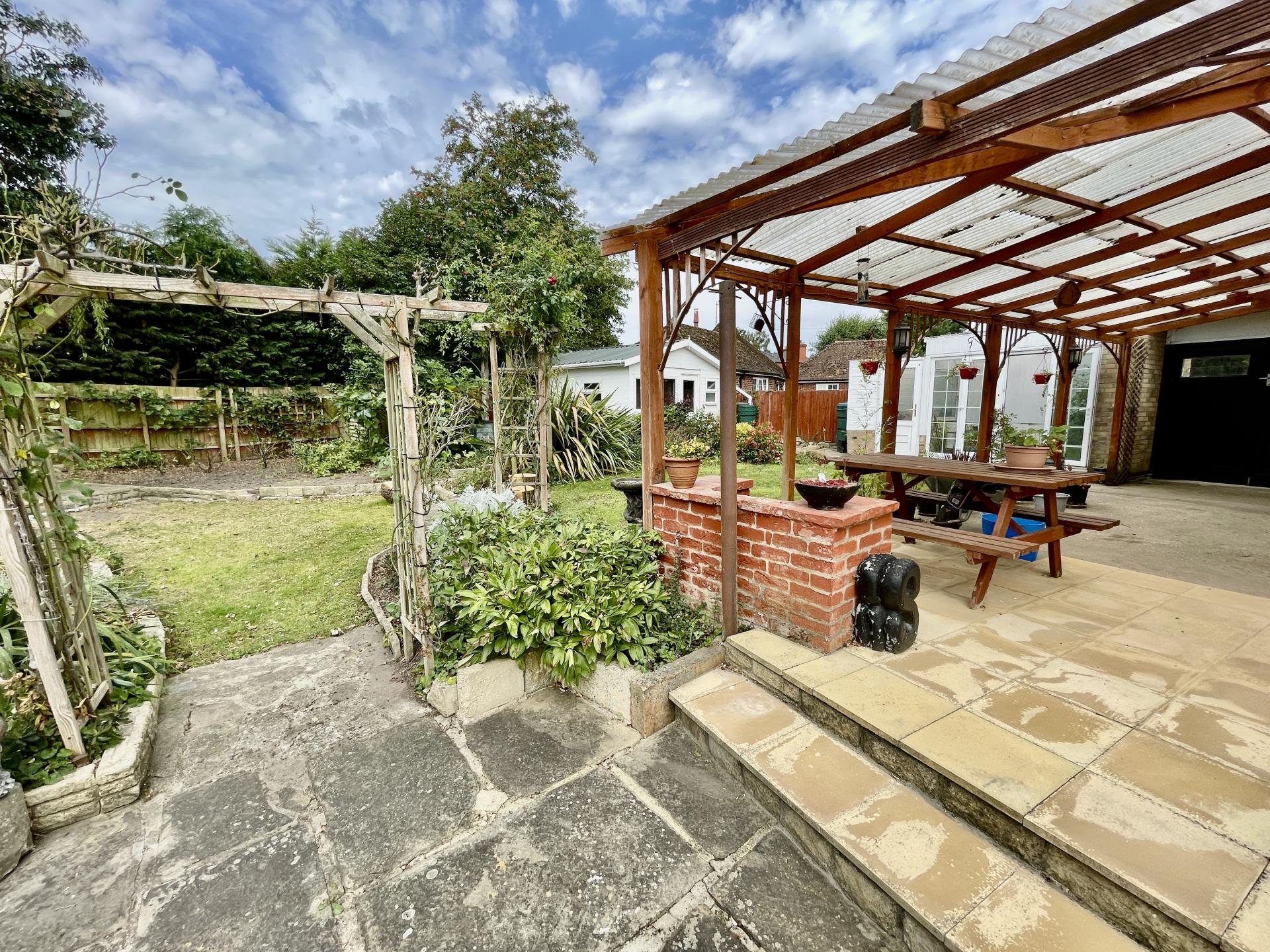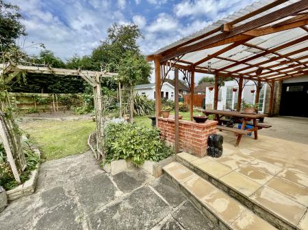 From side wrought iron gate leading into the rear garden with extensive outdoor lighting, paved patio area, further lawned area with shrub borders, further flagstone patio area, built in pergola covered area, outdoor tap. The garden is predominantly laid to lawn with a wide range of mature shurb and tree borders, further triple door gated access for vehicle access into a further covered concrete car port area, greenhouse with UPVC double glazed French doors to the front elevation, full length UPVC double glazed panels, potting shed with UPVC double glazed door to the front elevation, further patio area leading to: