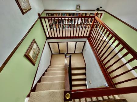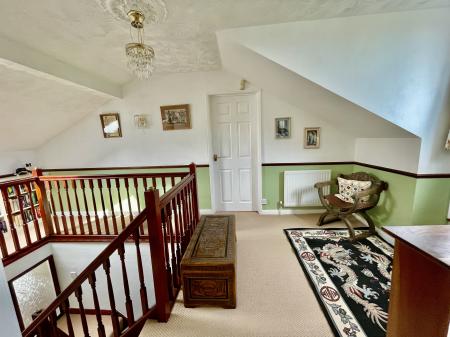 FIRST FLOOR GALLERIED LANDING 8' 10" x 18' 11" (2.71m x 5.79m) With UPVC double glazed window to the front elevation, fitted Velux window to the rear elevation, textured and coved ceiling with decorative ceiling rose and centre light point, built in book shelf, further build in cupboard and storage into eves, single radiator.