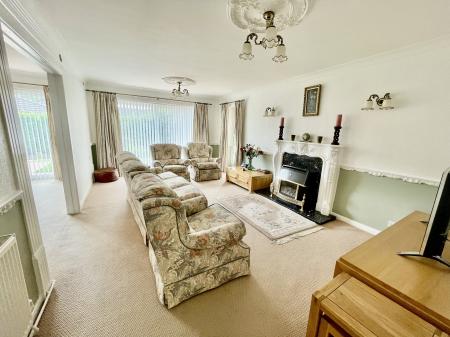 FORMAL LOUNGE 11' 11" x 19' 1" (3.65m x 5.83m) With full length UPVC double glazed sliding patio doors to the rear elevation, full length UPVC double glazed window to the side elevation with vertical blinds, skimmed and coved ceiling with 2 x decorative ceiling roses, 2 x centre light points, single radiator, TV point, feature fireplace with marble inserts and marble hearth with fitted gas log effect fire, 2 x double wall lights, square arch into: