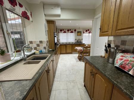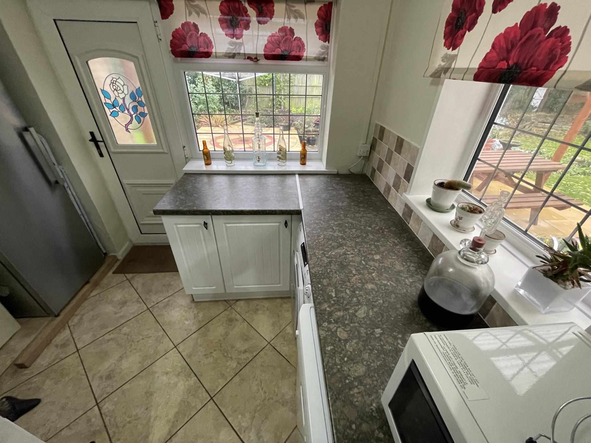 UTILITY ROOM 9' 9" x 6' 10" (2.99m x 2.1m) With UPVC double glazed window to side and rear elevations with roller blinds, obscured UPVC double glazed door to rear elevation, textured and coved ceiling with centre light point, smoke alarm, tiled flooring, fitted with a range of base and eye level units with preparation surfaces over tiled splashbacks, plumbing and space for automatic washing machine and dishwasher, fridge freezer space, wall mounted Bosch gas boiler.