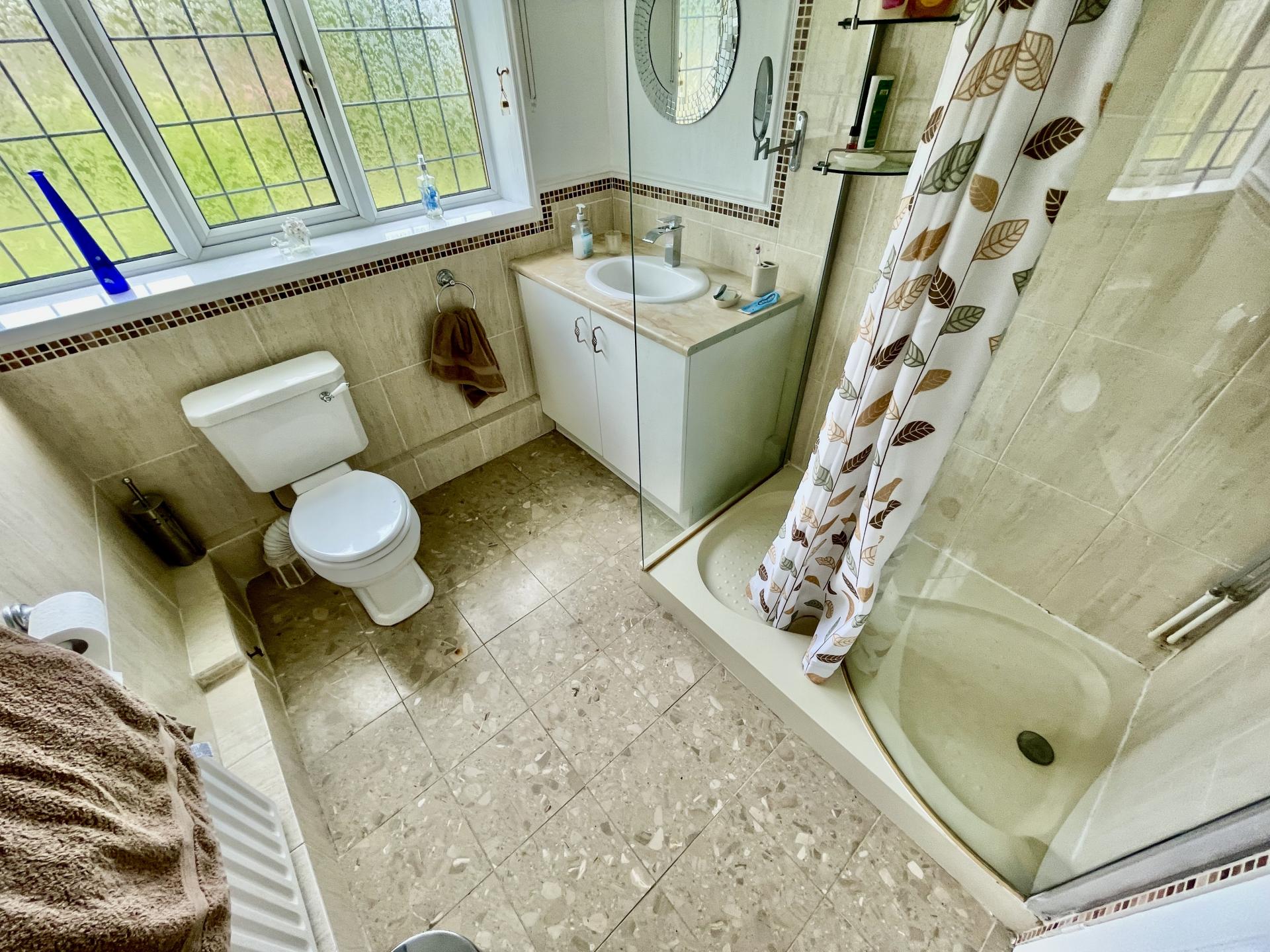 FAMILY SHOWER ROOM 7' 3" x 8' 3" (2.23m x 2.52m) With leaded obscure glazed UPVC double glazed window to the front elevation wit blind, textured and coved ceiling with centre light point, part tiled walls and full tiling to the shower enclosure, tiled flooring, fitted with a 3 piece suite comprising low level WC, wash hand basin fitted into vanity unit with mixer tap over, fitted multi jet shower, double radiator.