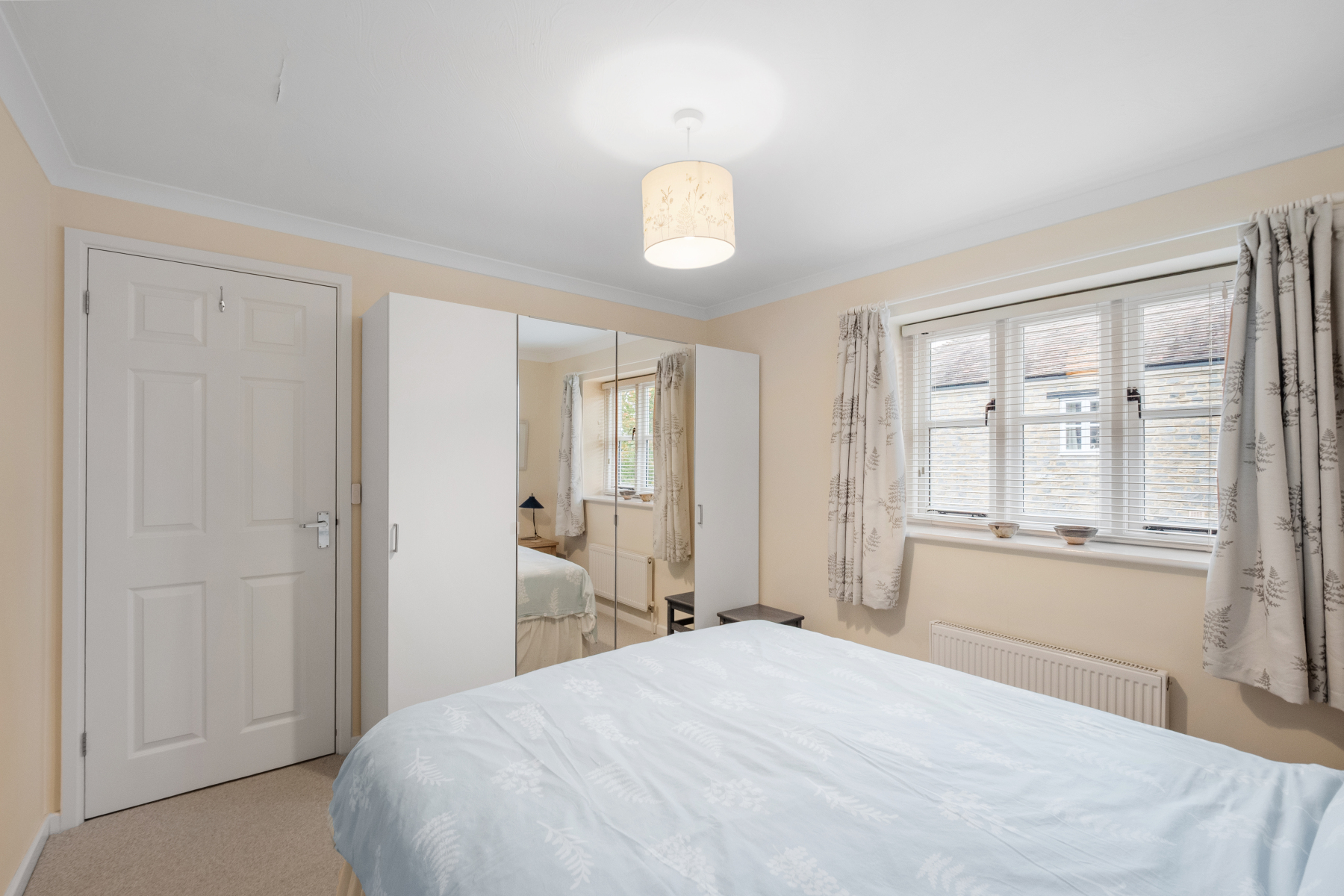 The two further bedrooms are both comfortable doubles. BEDROOM TWO benefits from an outlook to the side, while BEDROOM THREE includes built-in storage set cleverly over the stairwell. A generous airing cupboard provides further practical storage on the landing.