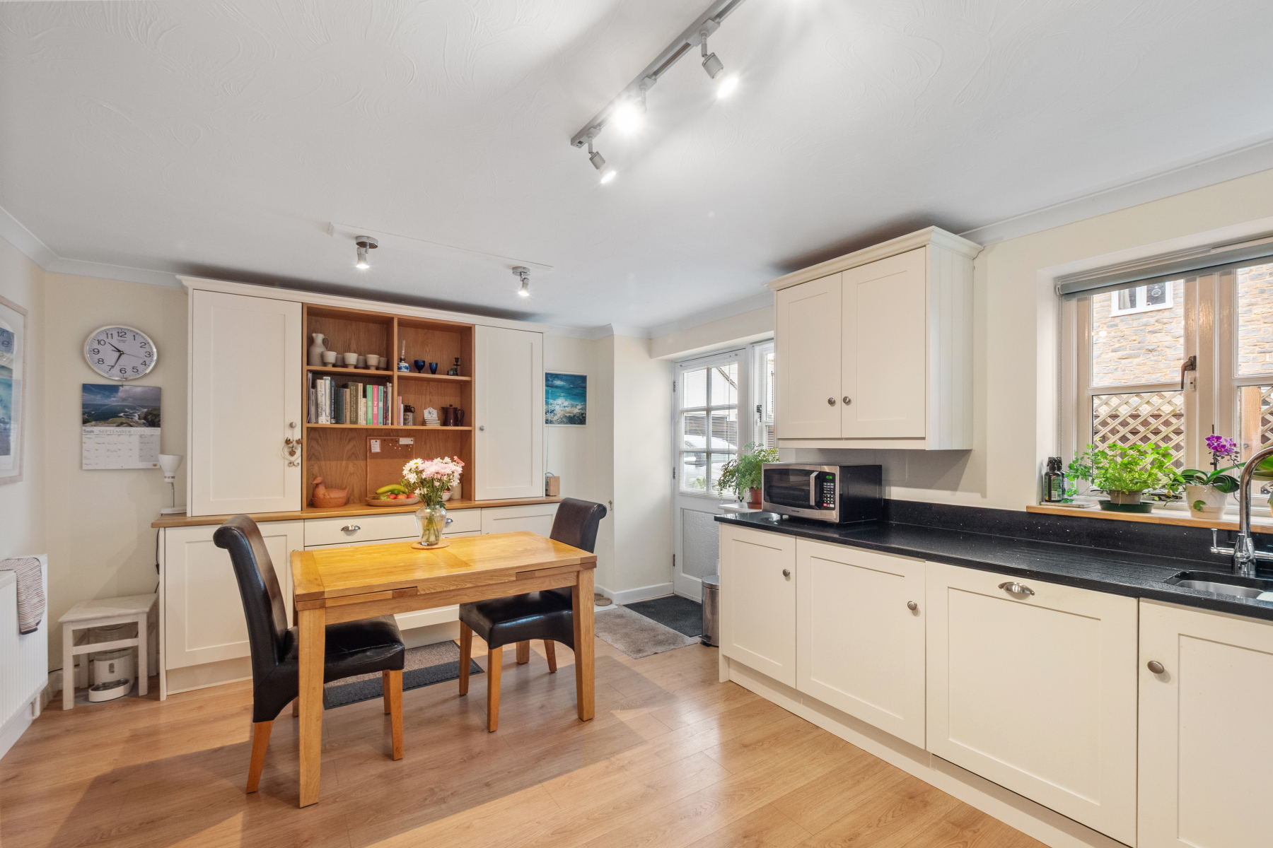 The SITTING ROOM is particularly inviting, stretching the full depth of the house. Windows to the rear and side ensure the room is bathed in natural light, while a handsome fireplace with inset gas fire, forms a warm focal point, perfect for gathering around on cooler evenings. The French door leading out onto the south-facing terrace seamlessly combines indoor comfort with outdoor living.
