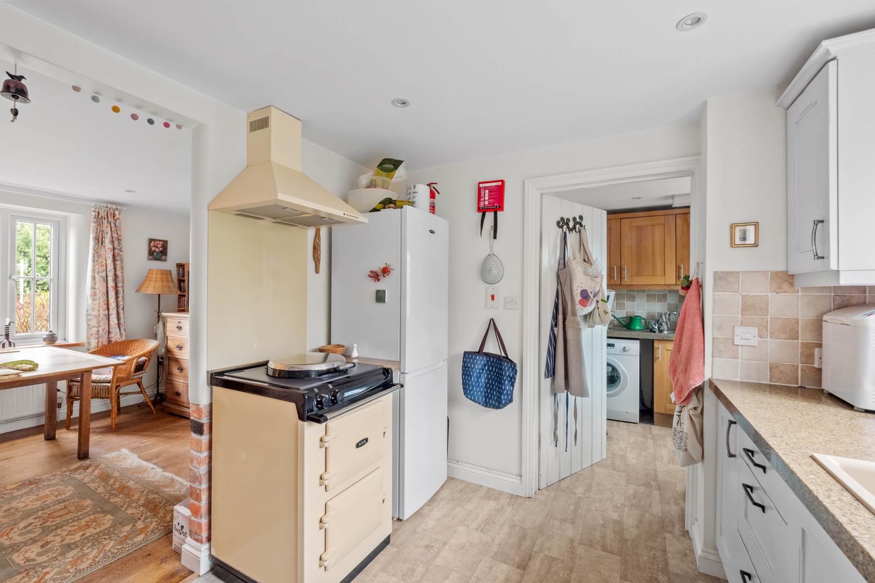 The KITCHEN overlooks the rear garden and is fitted with an Aga, dishwasher and fridge freezer, together with ample worktop space and a range of storage units. The layout offers practicality while maintaining a warm and traditional feel, perfectly complementing the character of the home.