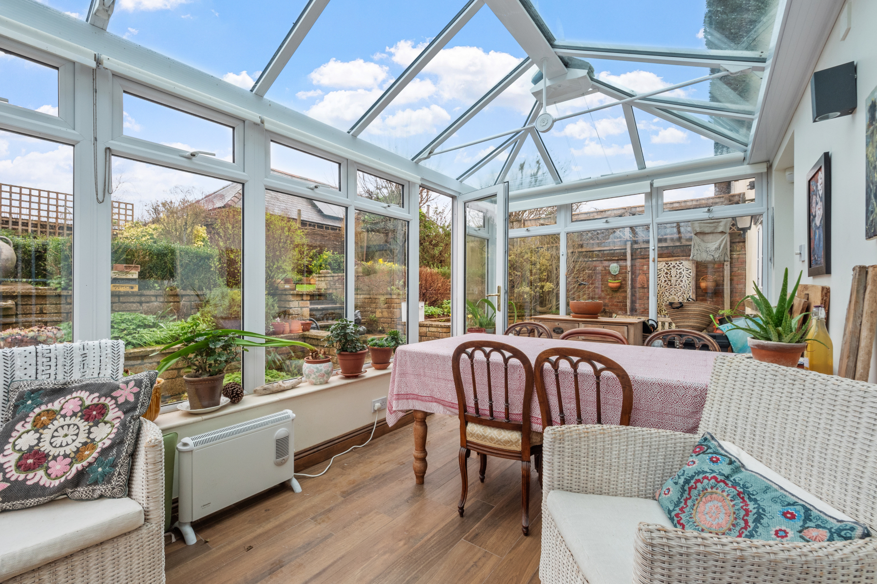 The SITTING ROOM is a particularly attractive and comfortable space, centred around a feature fireplace with log burner which creates a cosy focal point. There is ample room for a variety of furnishings, making it well suited to both relaxing evenings and entertaining guests. Double doors open into the CONSERVATORY, allowing natural light to flow through and enhancing the sense of space. The conservatory enjoys views across the garden and provides an excellent additional reception area, whether used as a garden room, playroom or informal dining space.