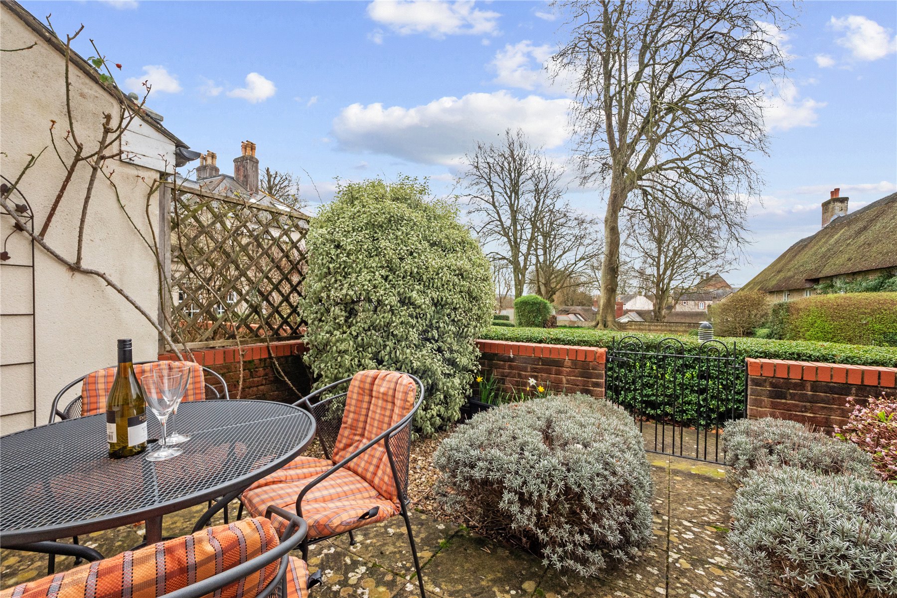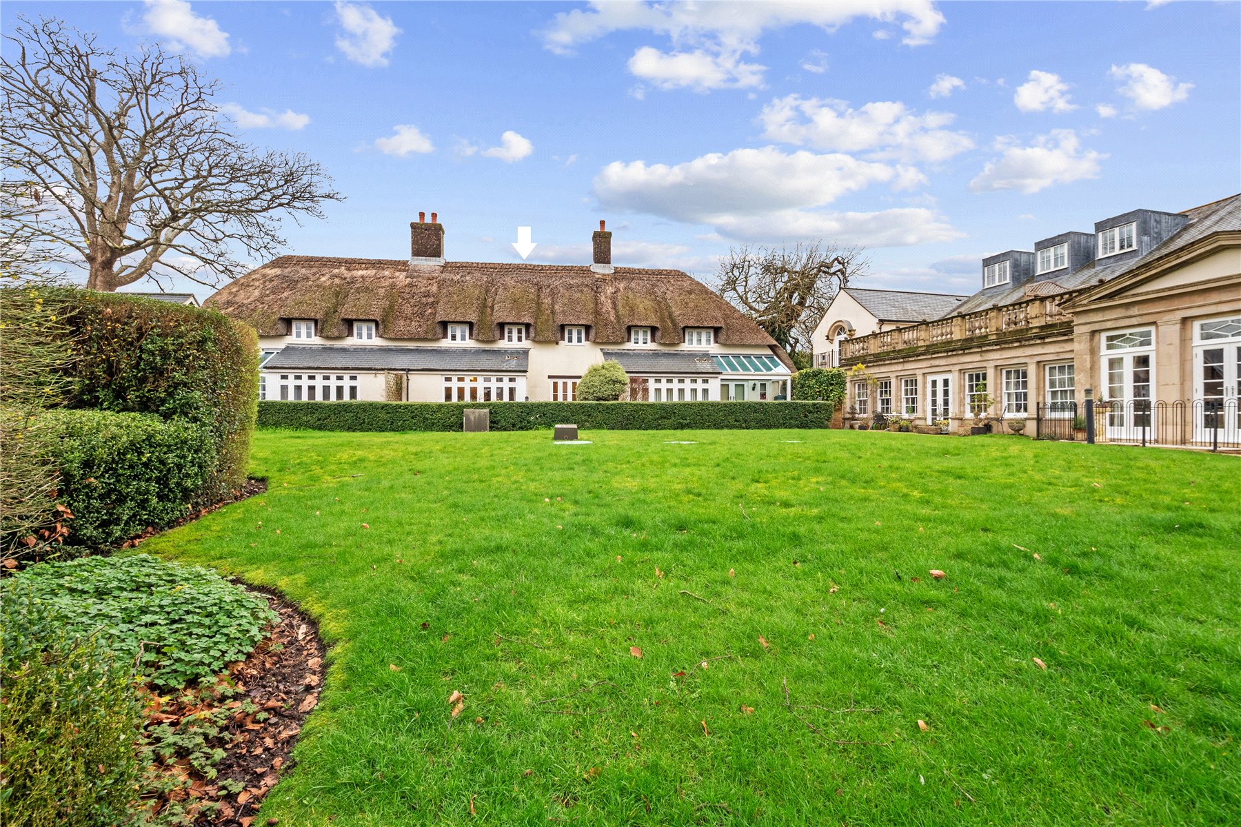 To the rear of the property is a south-facing courtyard enjoying an attractive outlook across the communal gardens, with far-reaching views of the countryside hills beyond. To the side, a paved patio provides an ideal setting for a table and chairs, perfect for outdoor dining while overlooking the courtyard and surrounding gardens. Adjacent to the patio is a low-maintenance landscaped garden, planted with shrubs and a variety of plants to provide seasonal colour. A pedestrian gate from the courtyard leads to a pathway guiding you to the parking area, garage, and the beautifully maintained communal gardens that form part of Barton Lodge.