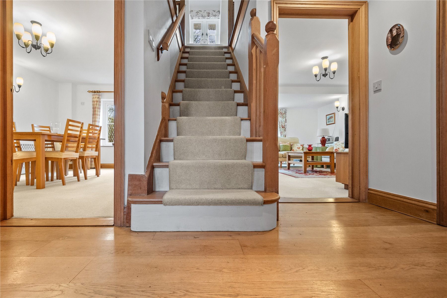 A sheltered canopy above the front door opens into the ENTRANCE HALL which is light and well proportioned, creating an immediate sense of space. A built-in cupboard provides useful storage for coats, boots and daily essentials, keeping the area uncluttered and functional.