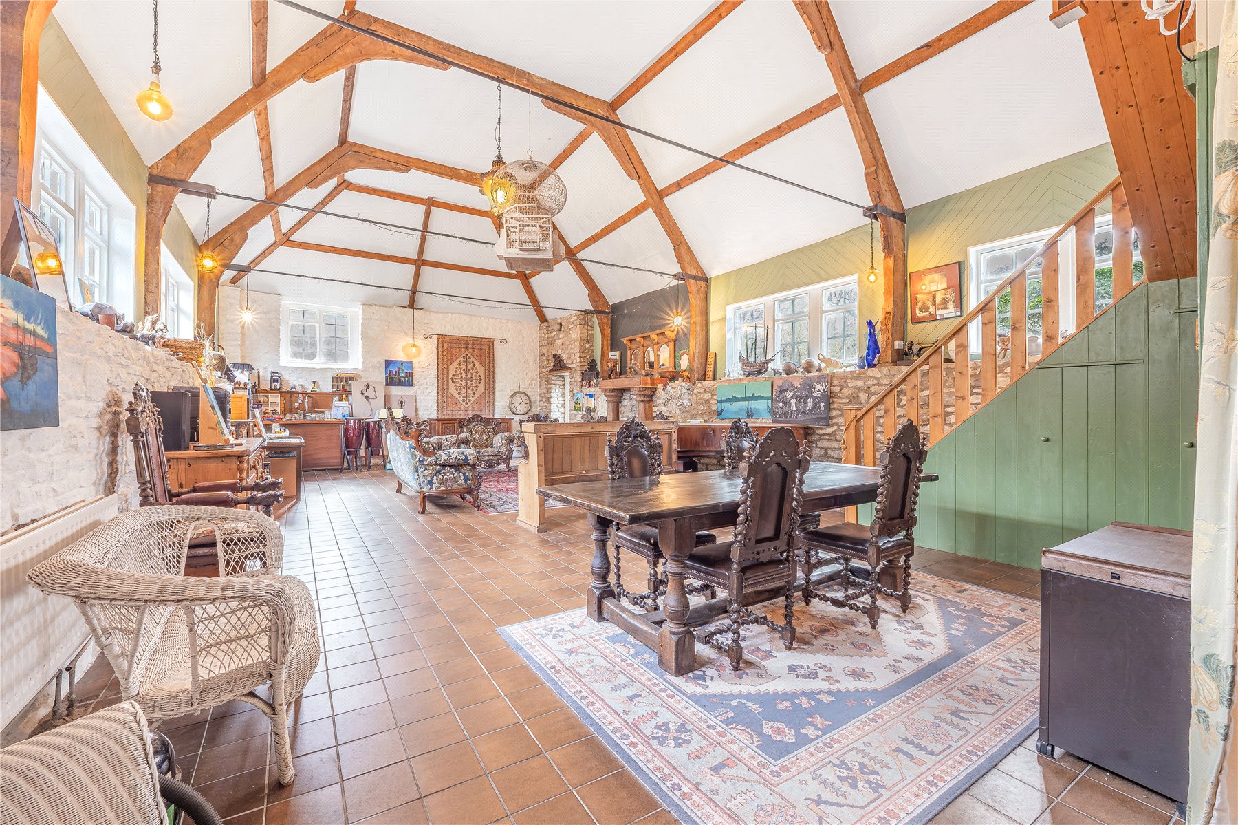 Impressive vaulted reception room with exposed beams