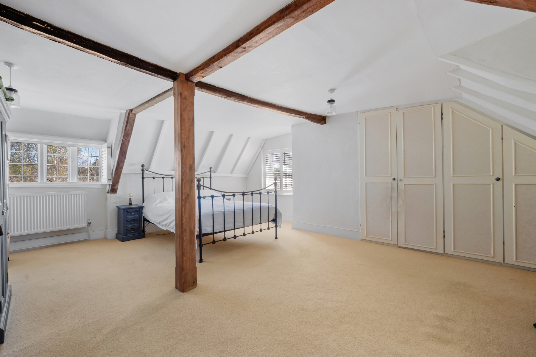 Ascending to the first floor the twin landings reveal well-proportioned bedrooms. The PRINCIPAL bedroom enjoys a triple aspect, original beams, and fitted wardrobes, complemented by an ENSUITE SHOWER ROOM. Located to the front are BEDROOMS THREE and FOUR, both doubles and offer comfortable spaces, served by a family BATHROOM. A suite of rooms, perfect for a self-contained unit, includes a private sitting area, a large single BEDROOM FIVE, and a spacious double BEDROOM TWO, all complemented by an additional family BATHOOM. On a practical note, is a cupboard housing the boiler and cylinder, and access to a loft space with power and light.