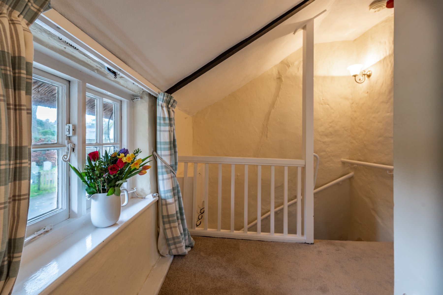 Venturing upstairs the landing has a window overlooking the churchyard and provides plentiful light. The PRINCIPAL BEDROOM again exudes character with further beams, the chimney breast and views of the village to both front and rear. BEDROOM TWO does not disappoint, with further beam and views to the rear and the interesting village scape. Concluding the character accommodation is the upstairs CLOAKROOM with small vanity unit with wash hand basin and Saniflo type W.C.